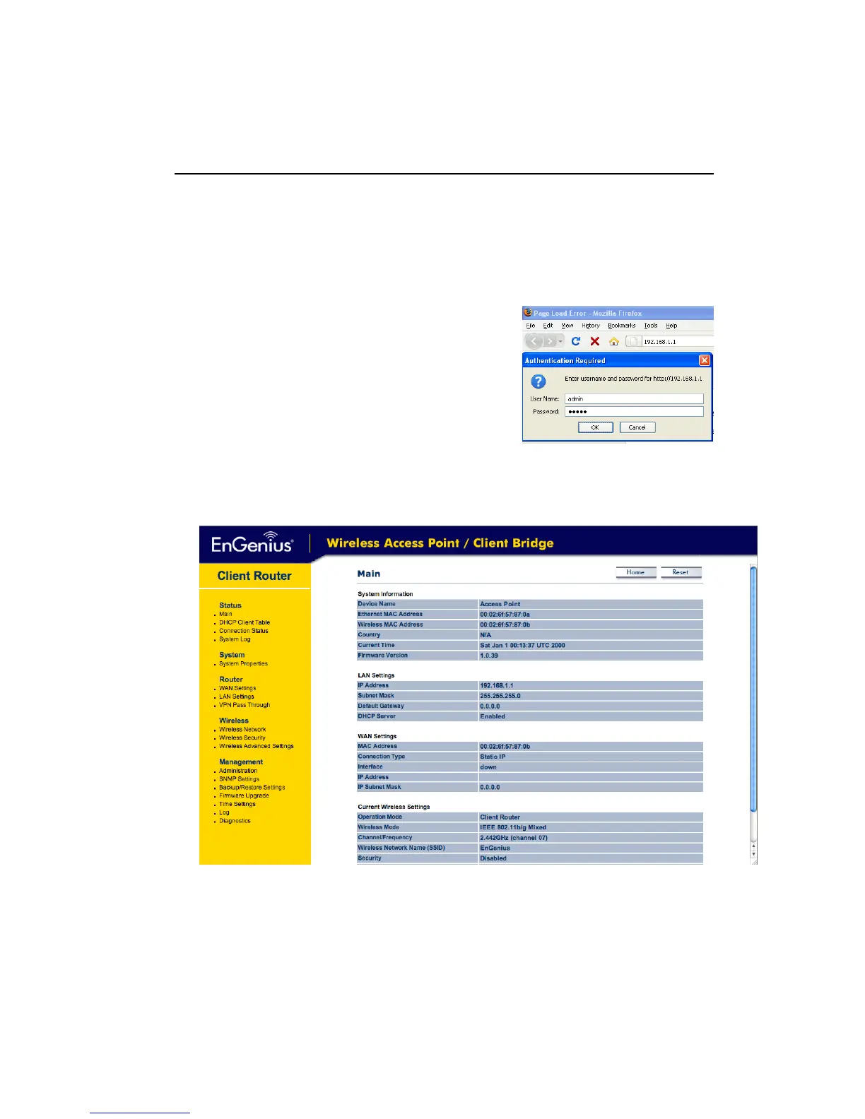 (default:192.168.1.1)intotheaddressbaroftheweb‐browserandpressEnter.