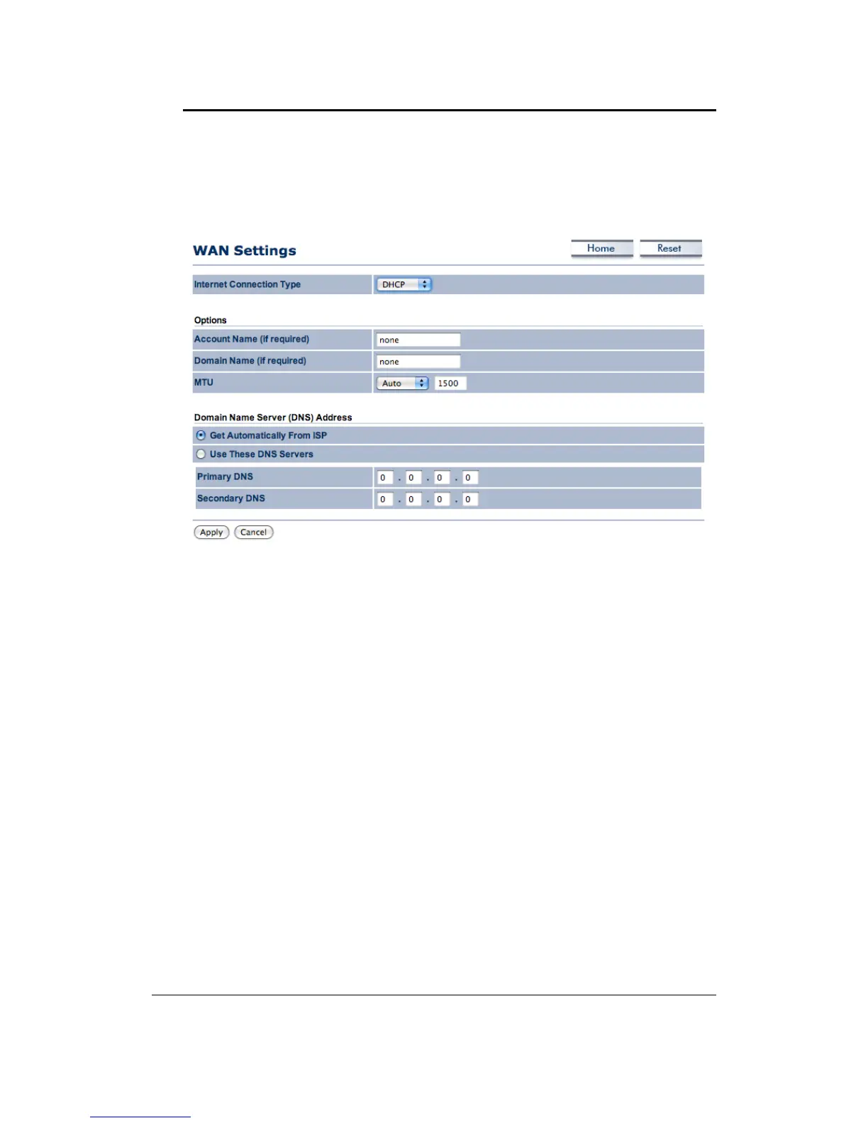 InternetConnectionType:SelecttheDHCPfromthedrop‐downlist.