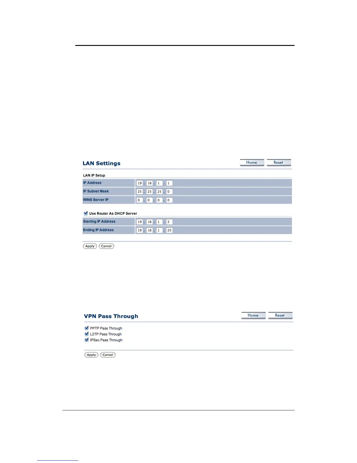 Click on theLAN Settingslink under theRouter drop‐downmenu.This page allowsyou to