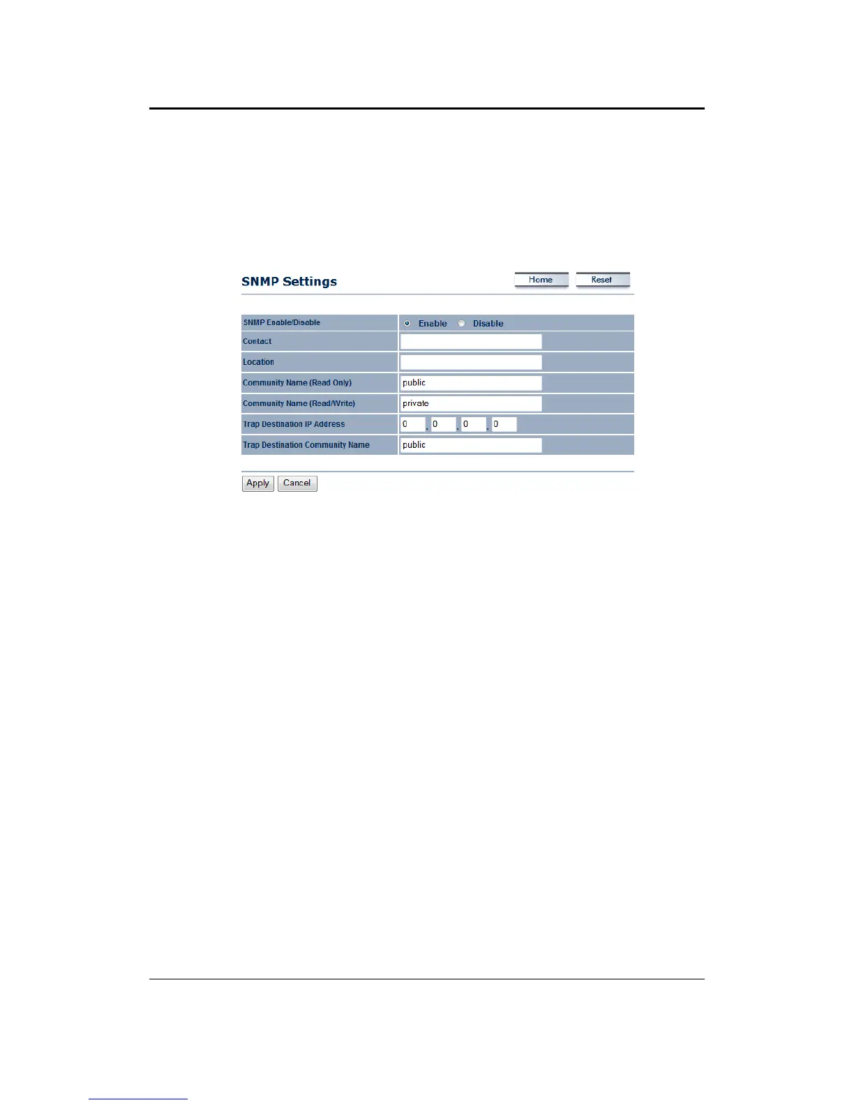 SNMPEnable/Disable:ChoosetoenableordisabletheSNMPfeature.