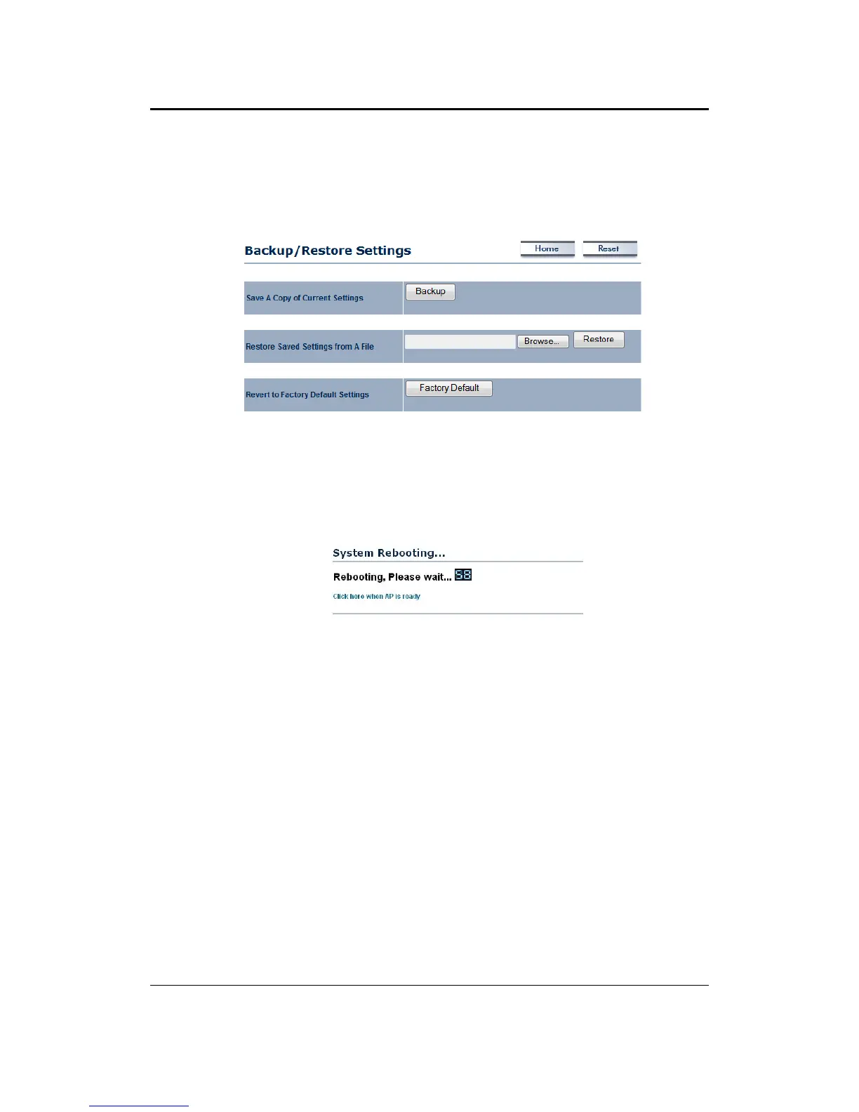 device to the default settings. Please wait while the device restart and then access the device
