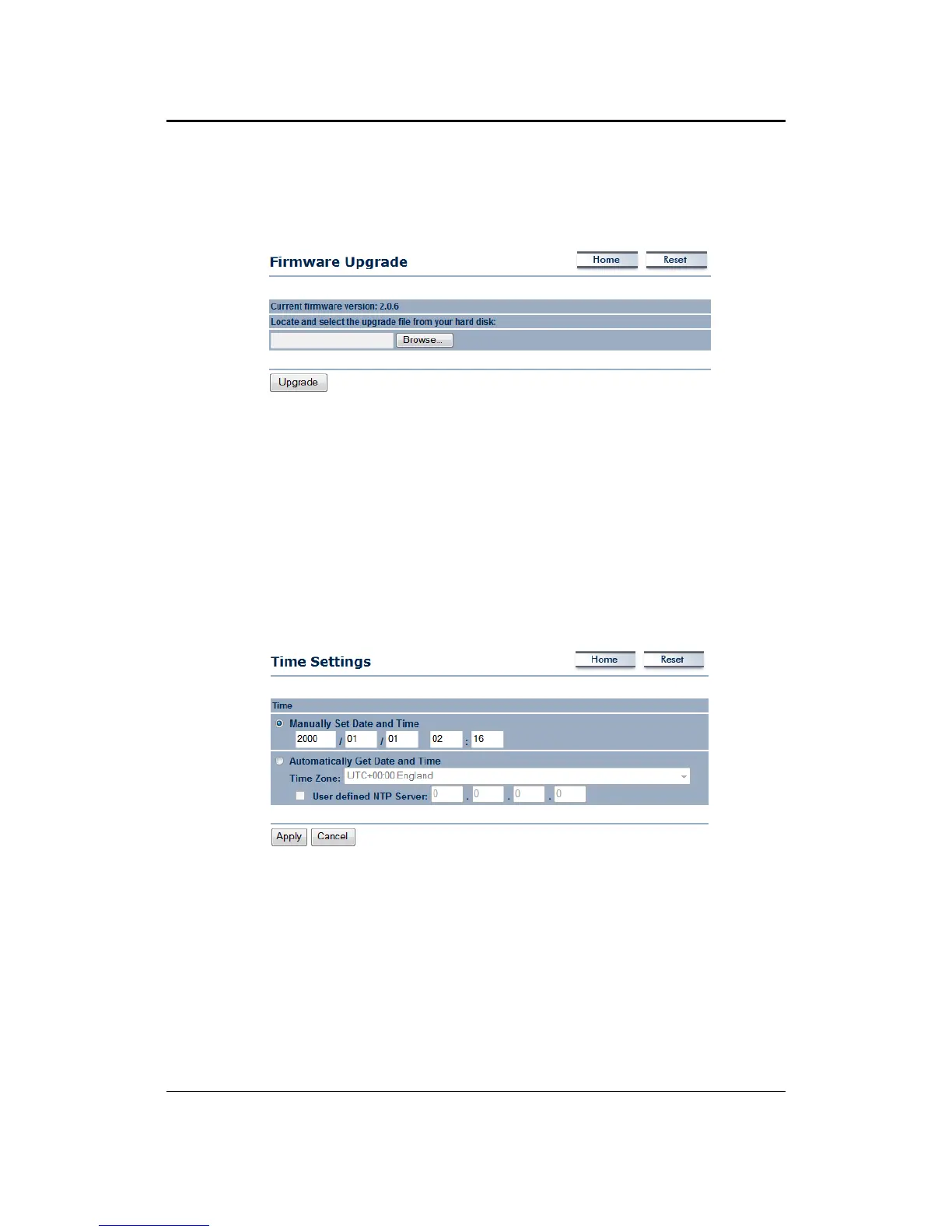 This page allows you to configure the time on the device. You may do this manually or by