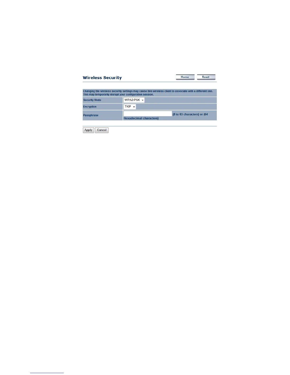Encryption: Select TKIP or AES from the drop‐down list if your wireless network uses this