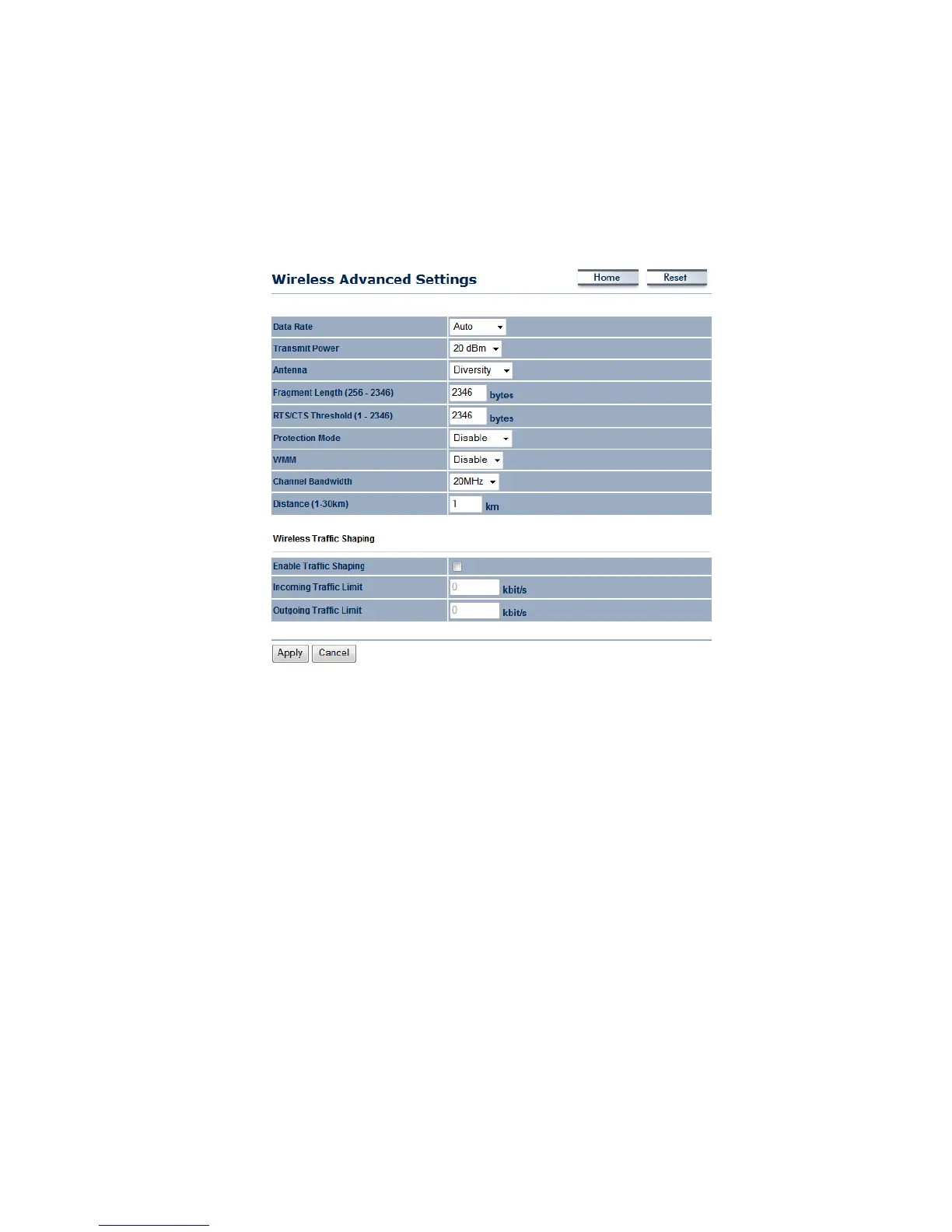 Wireless Traffic Shaping: Specifythe maximum bandwidthallocated to Incoming andOutgoing