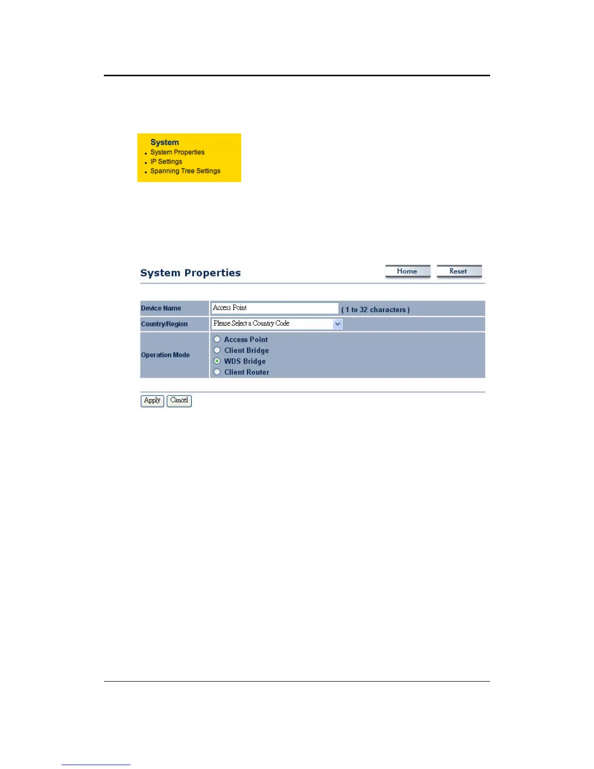 ThispageallowsyoutoswitchtheOperatingModeofthedevice,aswellasspecifyanameand