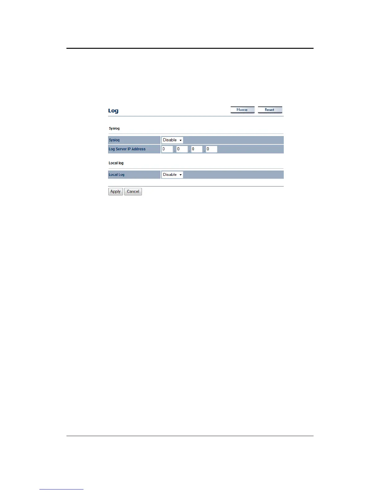 Syslog:Choosetoenableordisablethesystemlog.