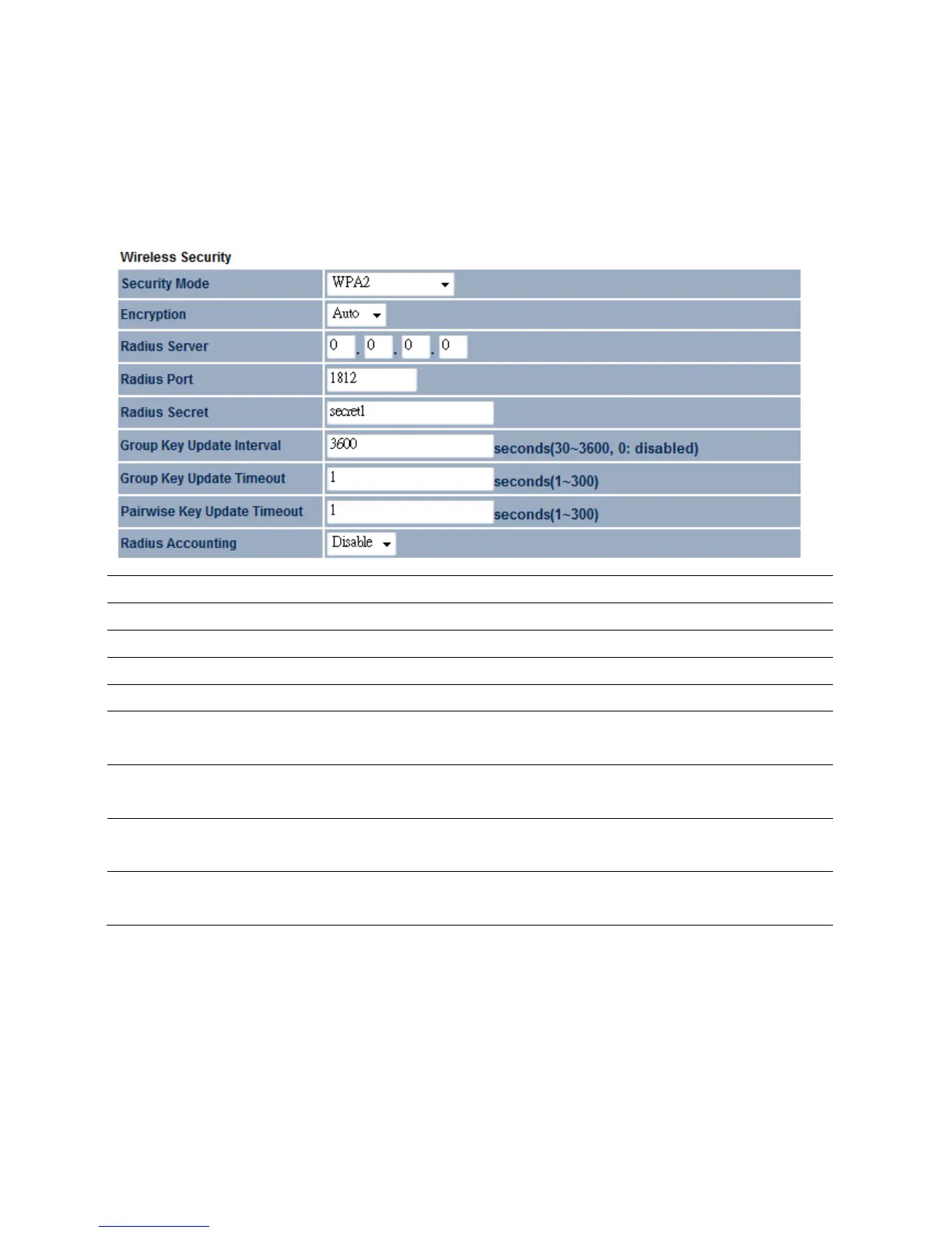 WPA2securitymodeisfor802.1xauthentication.YoumustprovideaRADIUSServertocheckthe