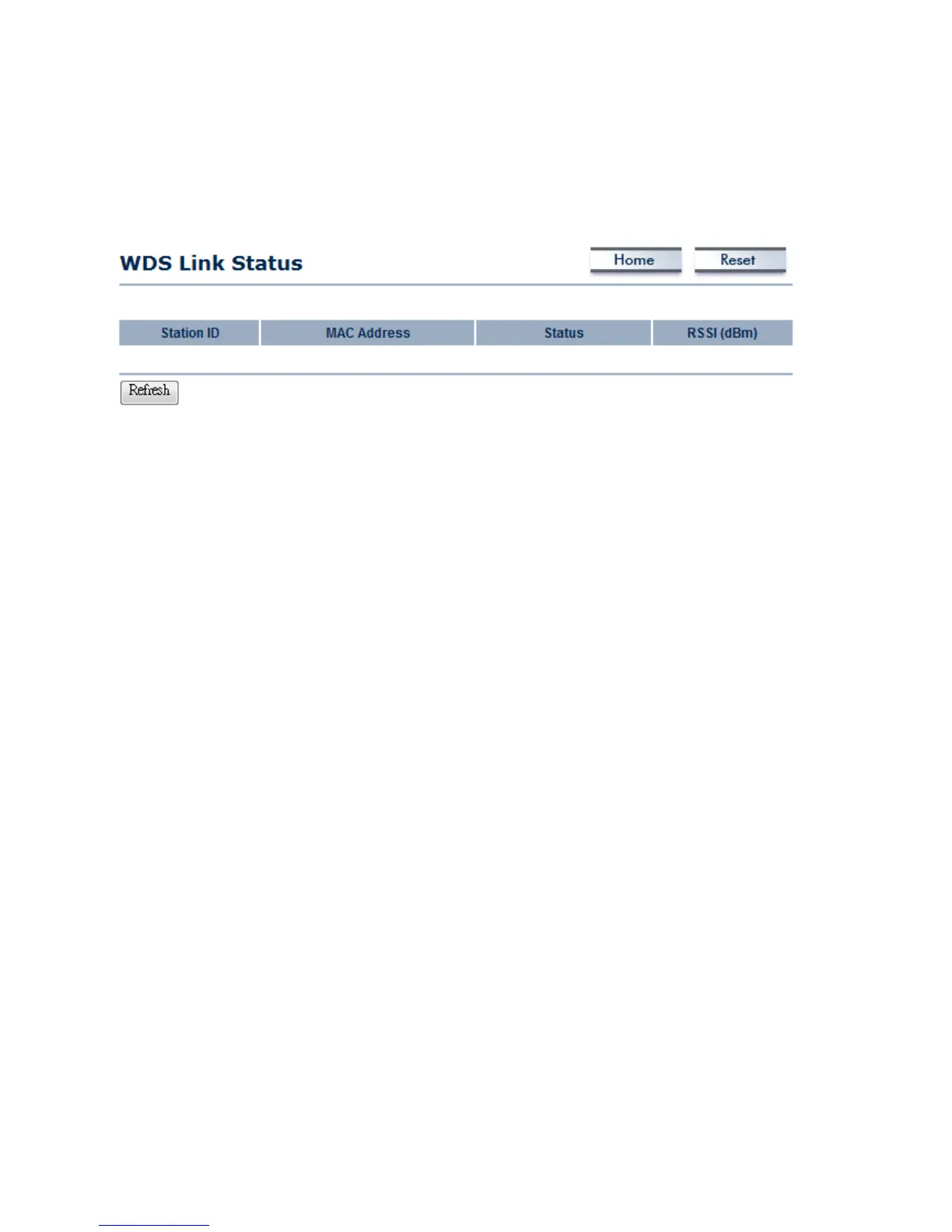 Statusdropdownmenu.ThispagedisplaysthecurrentstatusofWDSlink,includingstationID,MAC