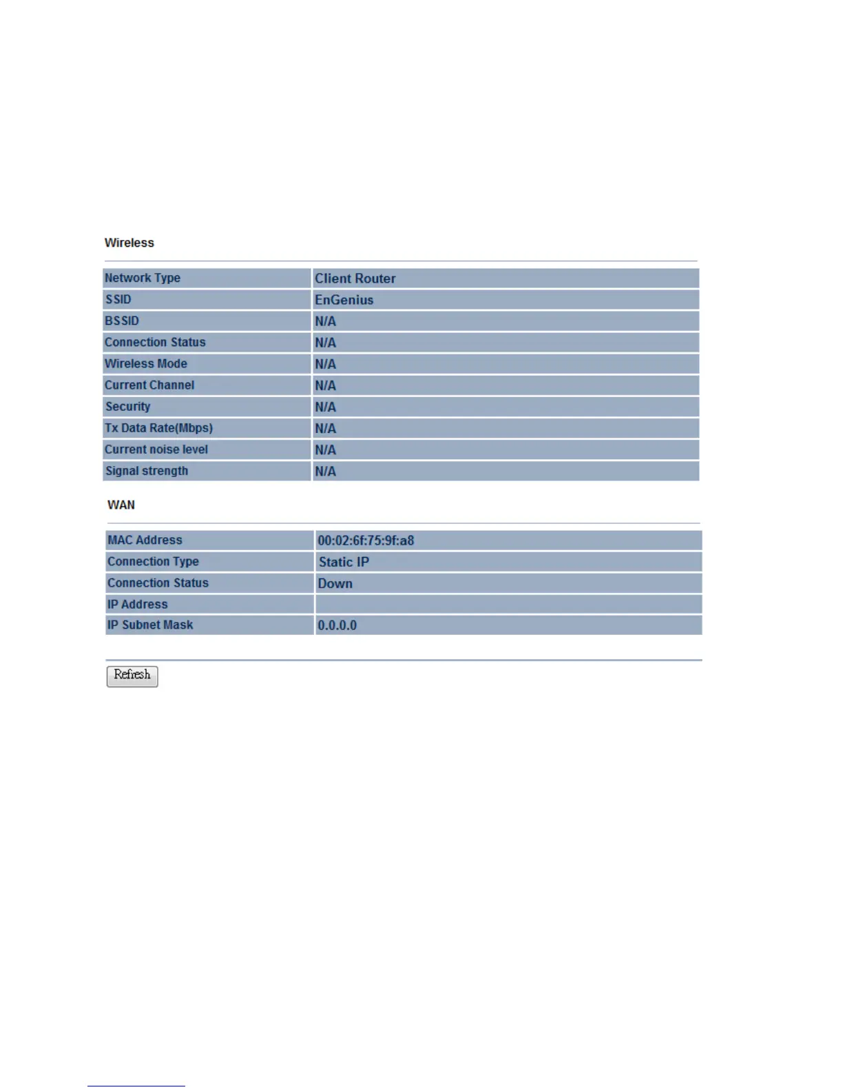 ClickontheConnectionStatuslinkundertheStatusdrop‐downmenu.Thispagedisplaysthe