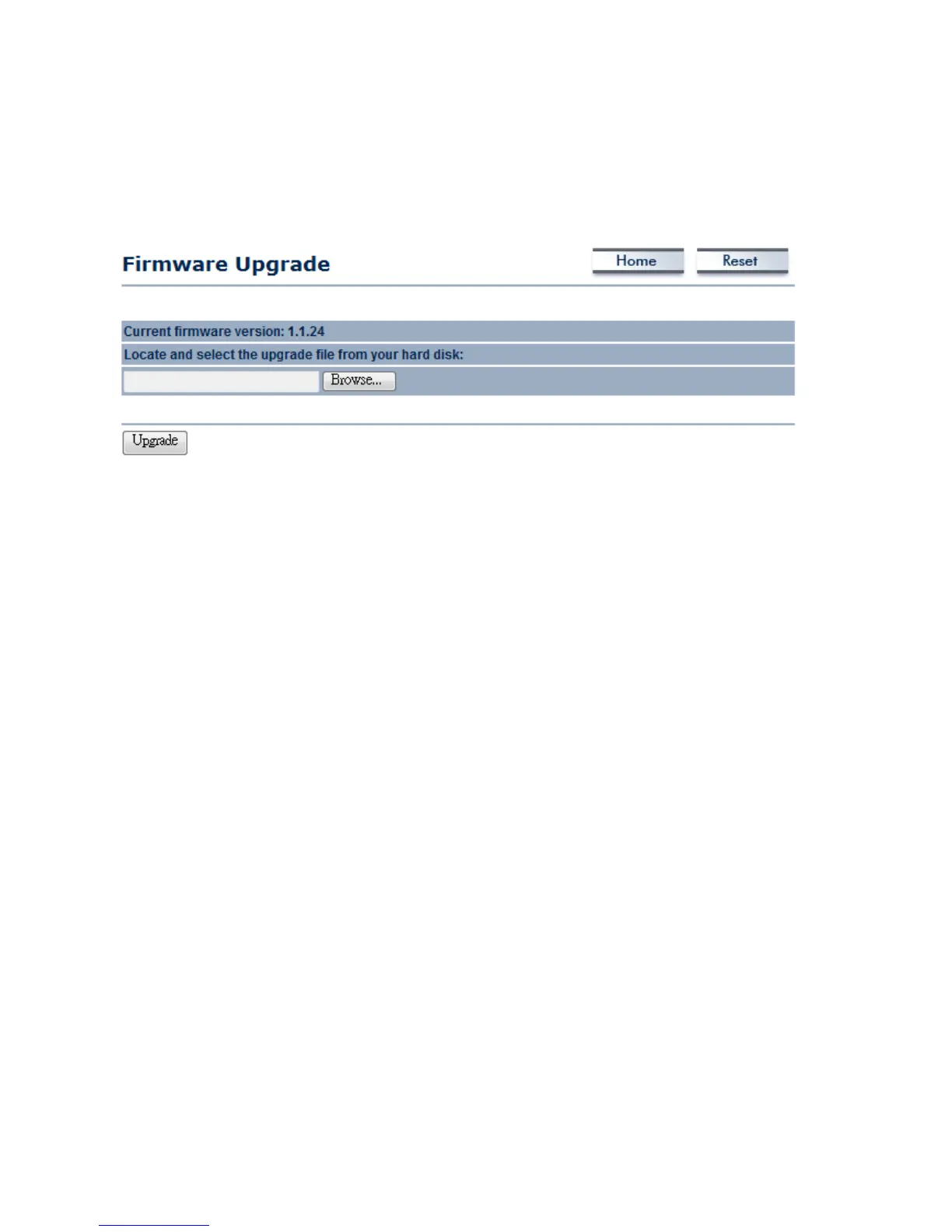 ClickontheFirmwareUpgradelinkundertheManagementmenu.Thispageisusedtoupgradethe