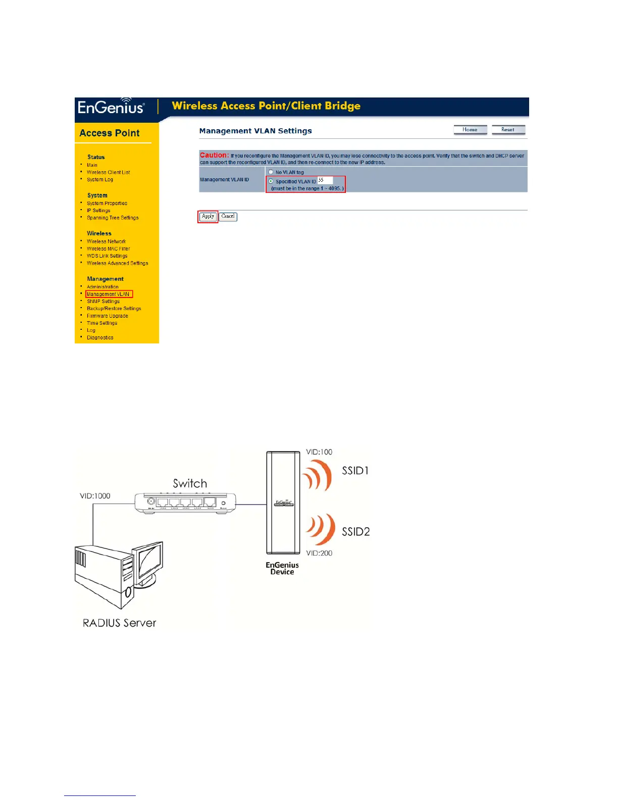 Note:EnGeniusproductsupportsmaximum4differentSSIDwithdifferentVLANID.