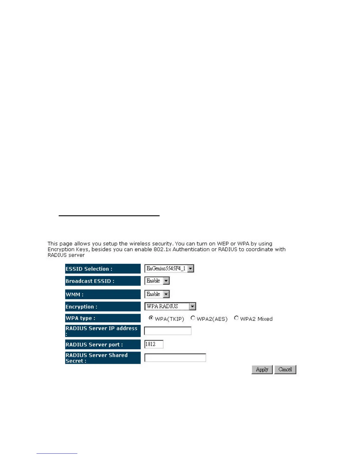 ¾ WPAType:SelectTKIP,AES,orWPA2Mixed.Theencryptionalgorithmusedtosecurethe