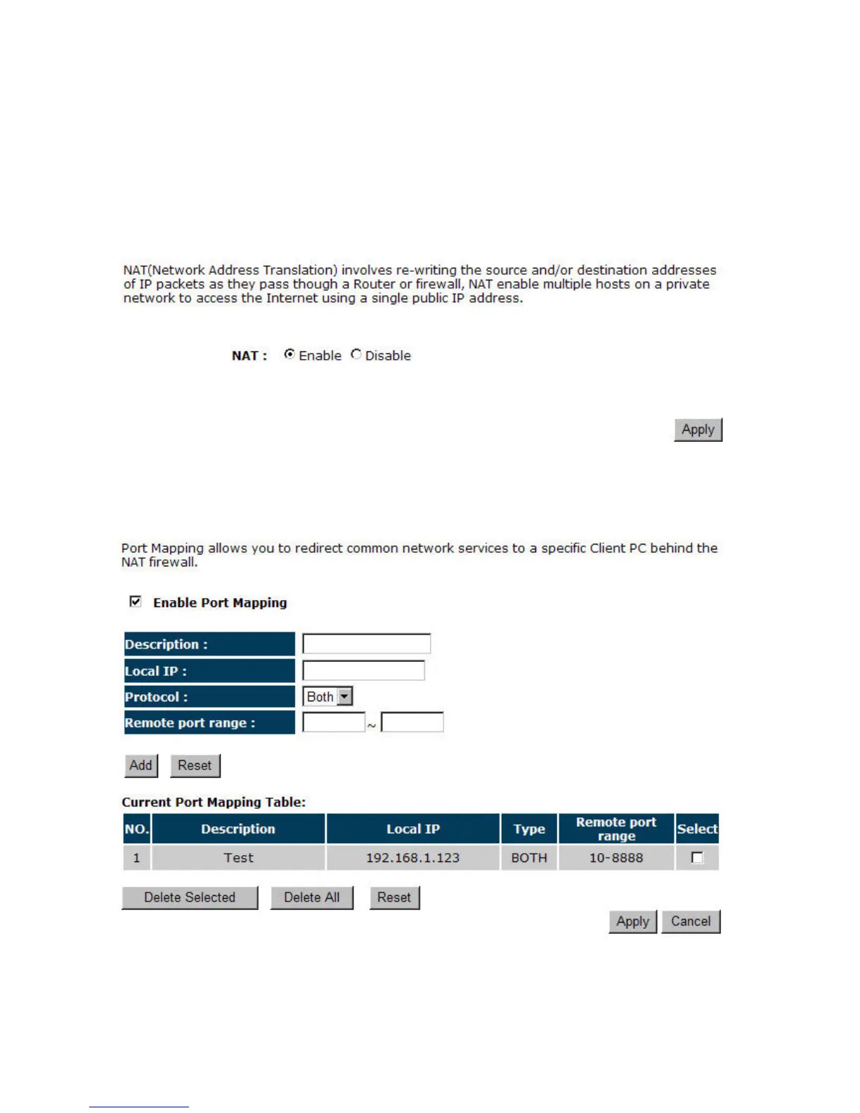 Thisallowsyoutoenable/disableNATserviceofthedevice.