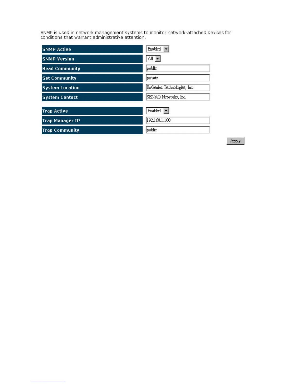 ¾ TrapActive:ChoosetoenableordisabletheSNMPtrappingfeature..