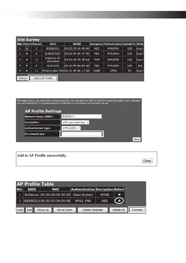 wSi el enrutador objetivo emplea cifrado, introduzca la contraseña en Pre-shared Key