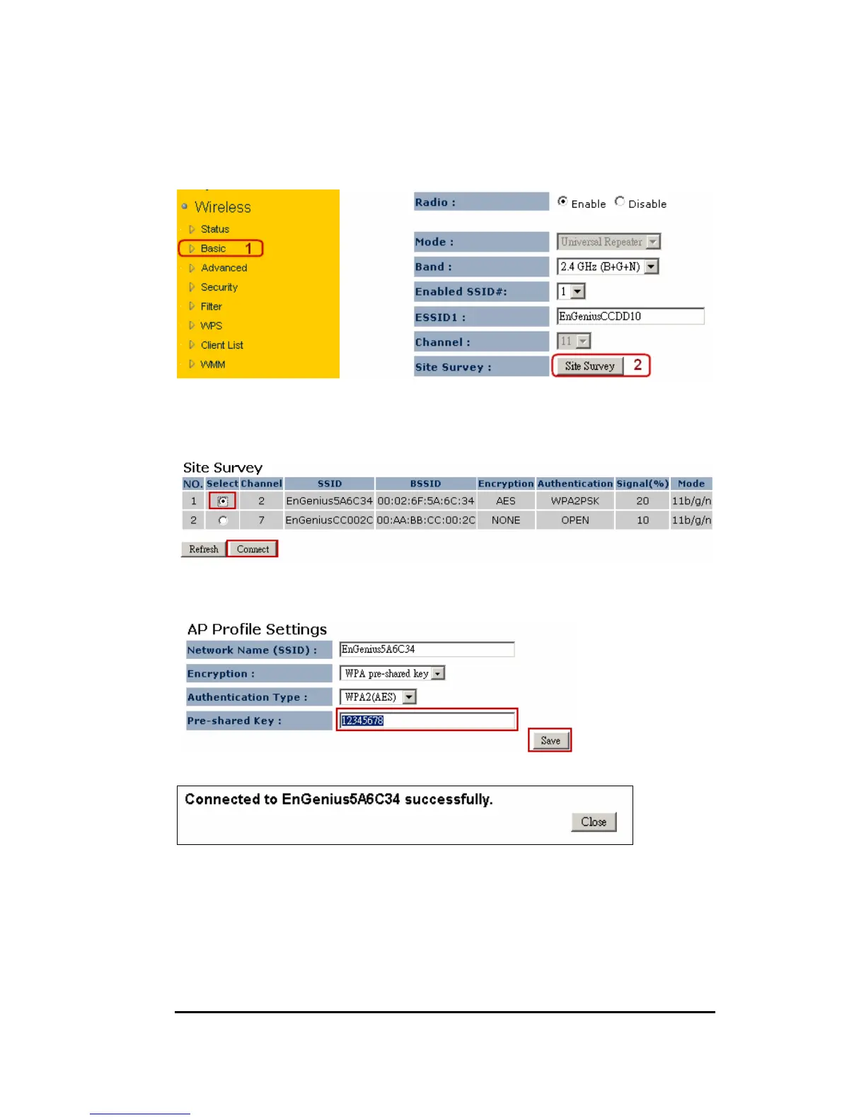 12. Pop-up box showing the connection established between AP and the extender.