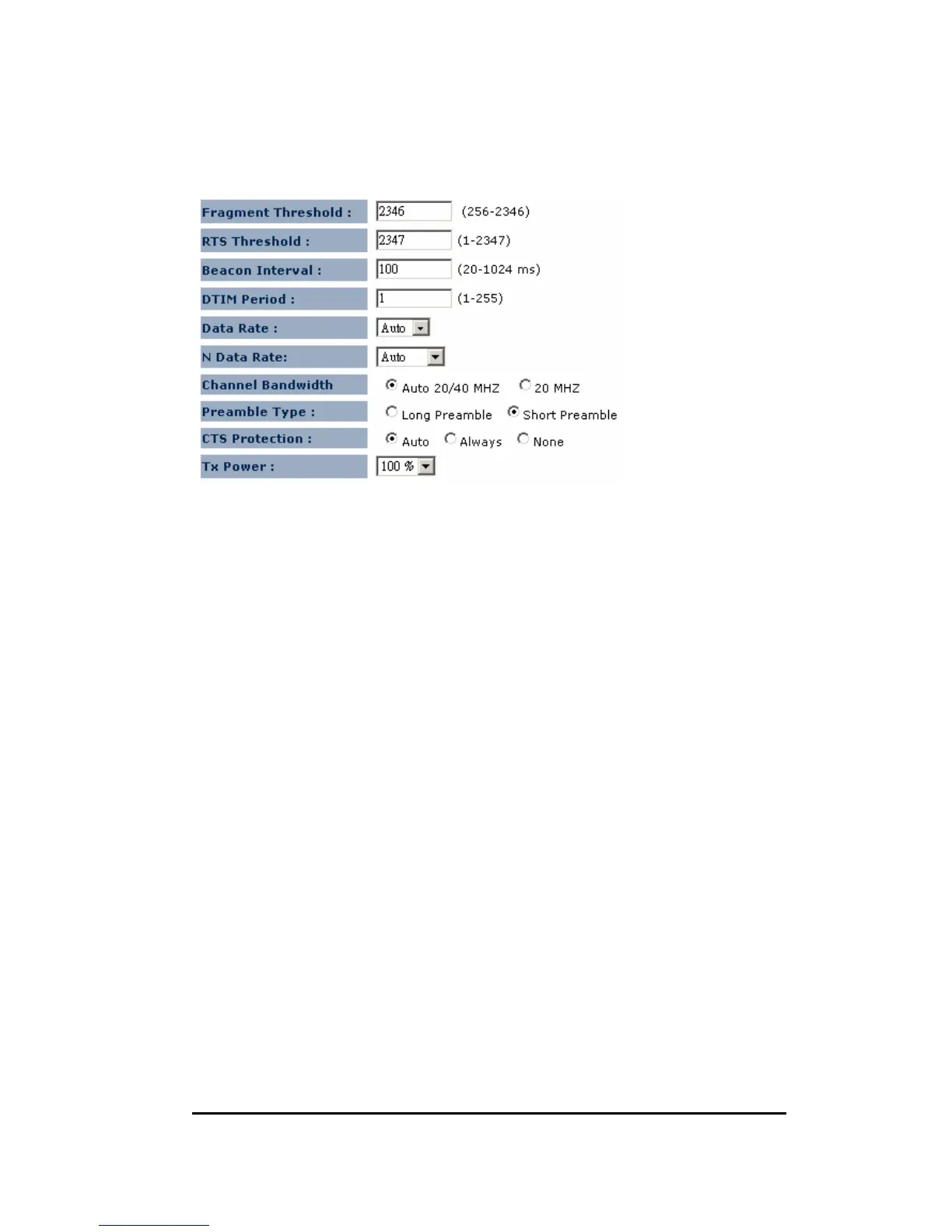 Beacon Interval: This is the interval of time that this wireless router broadcasts