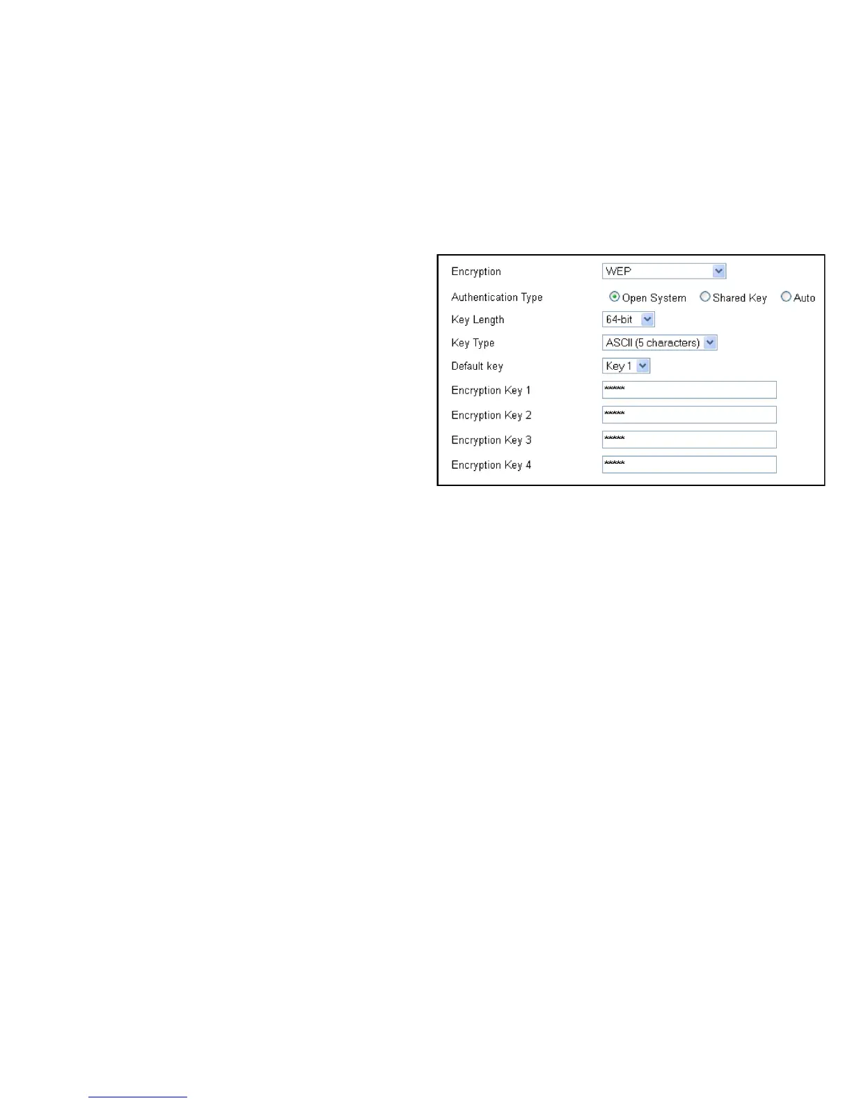 Selecting the type of WDS encryption (Disable, WEP or WPA Pre-