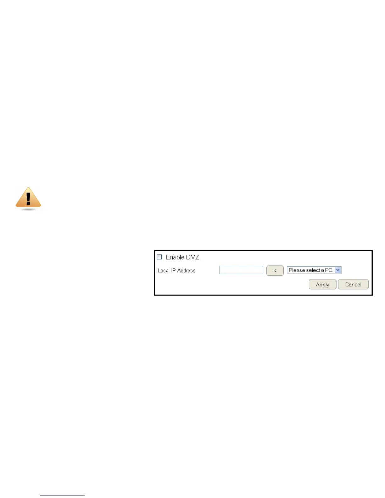 WARNING! The PC dened as a DMZ host is not protected by the rewall and is vulnerable to malicious network attacks.