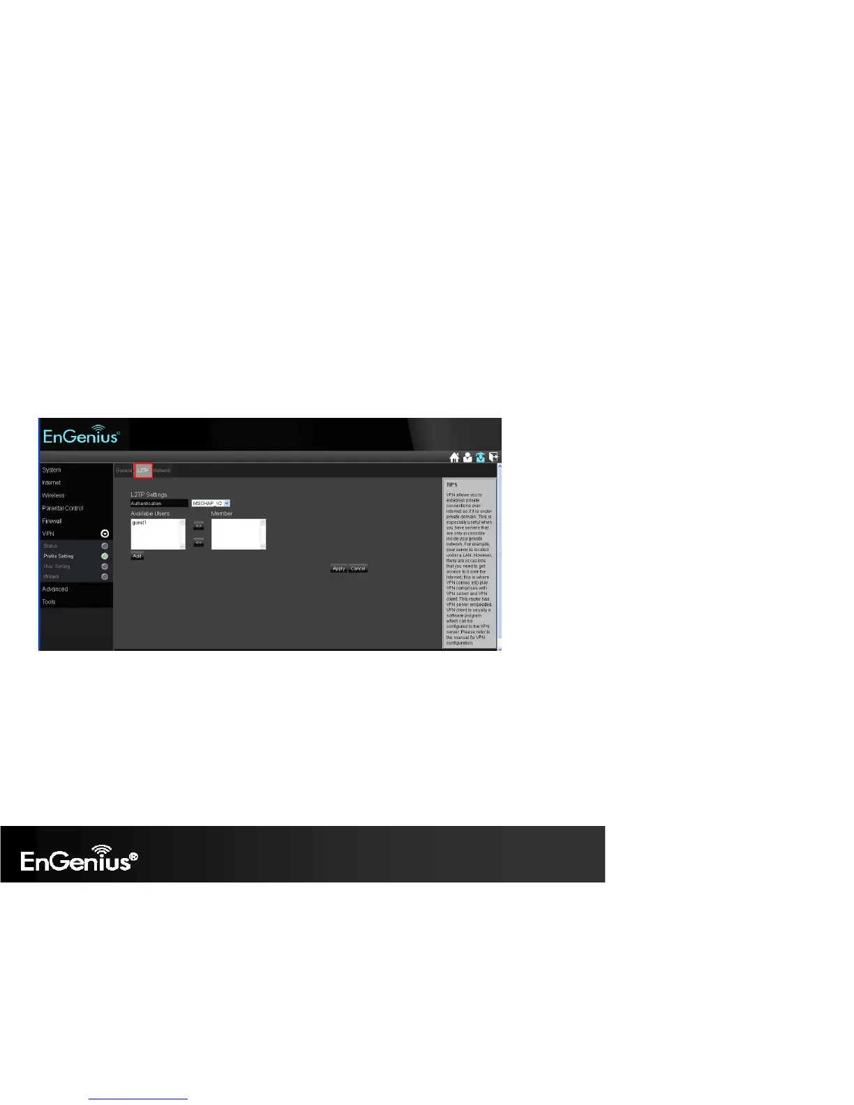 Available Users: The users who you created in the User Setting to connect to PPTP server will be displayed. Select the users in the list who you
