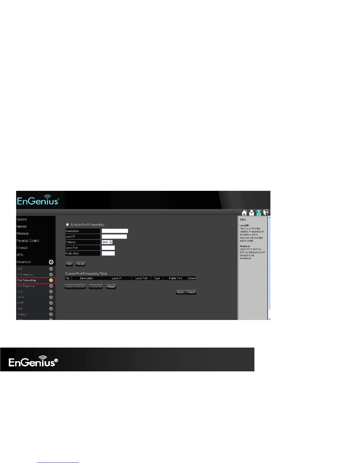 Advanced > Port Forwarding