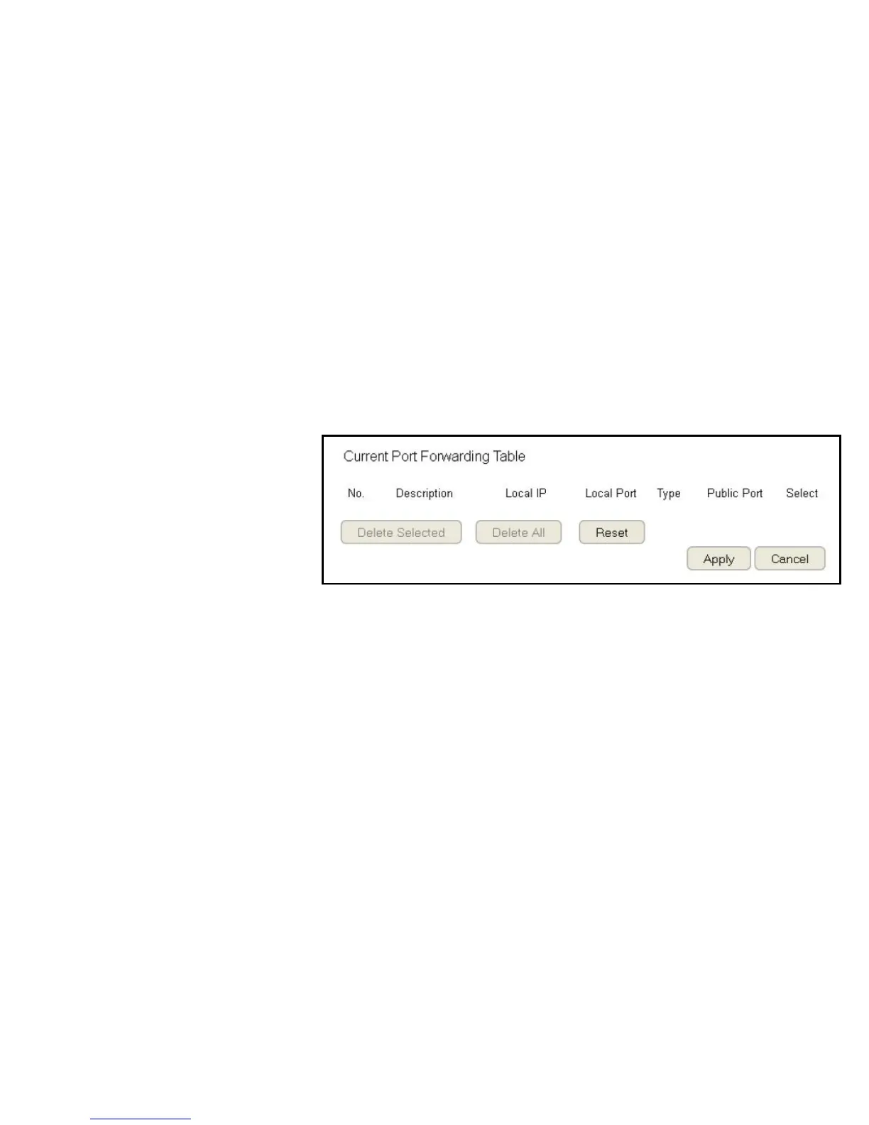 Current Port Forwarding Table