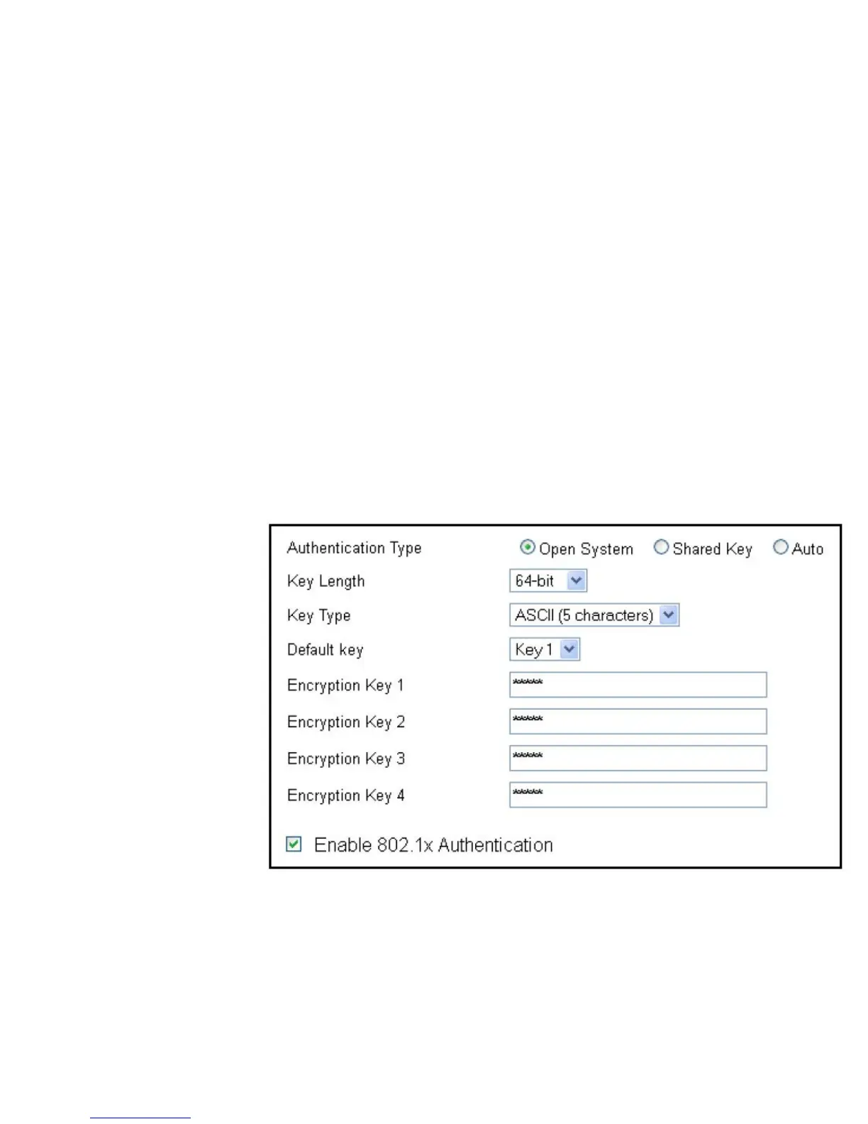 • Shared Key: DevicesmustprovidethecorrespondingWEP