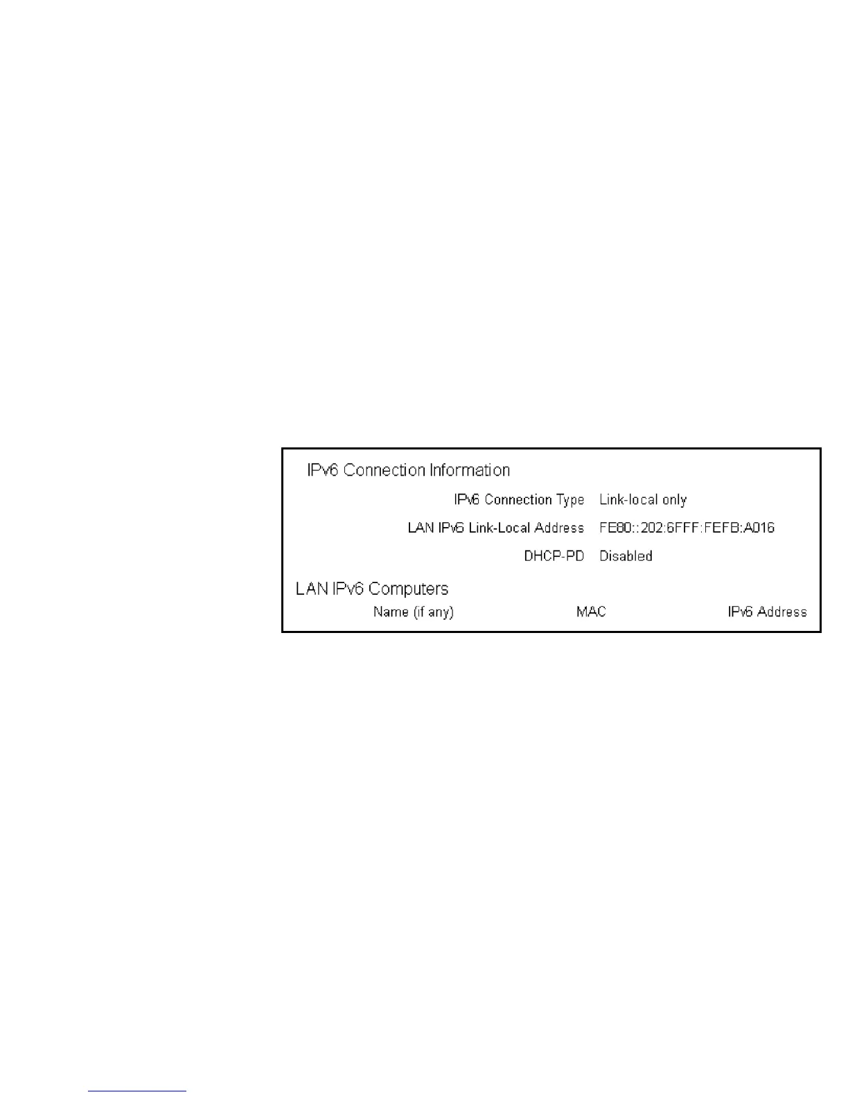 ShowstheIPv6connectiontype,theLANIPv6link-localaddressandtheDHCP-PD.