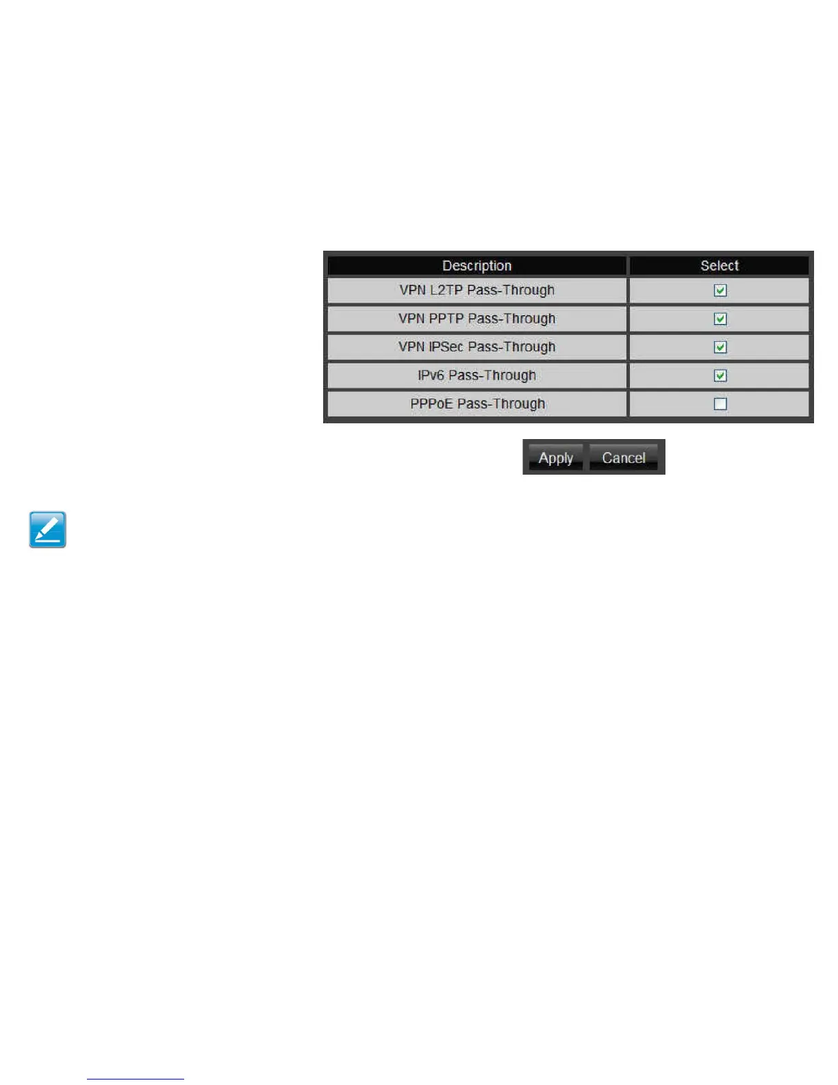 Note: VPNL2TPPass-through,VPNPPTPPass-through,andVPN