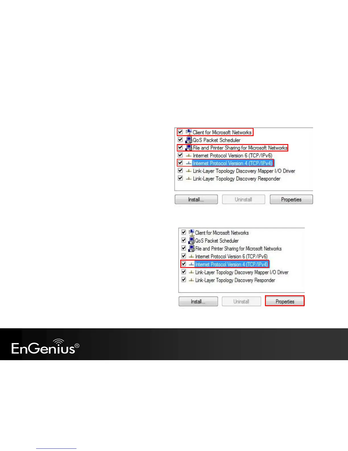 5. Check “Client for Microsoft Networks”, “File and Printer