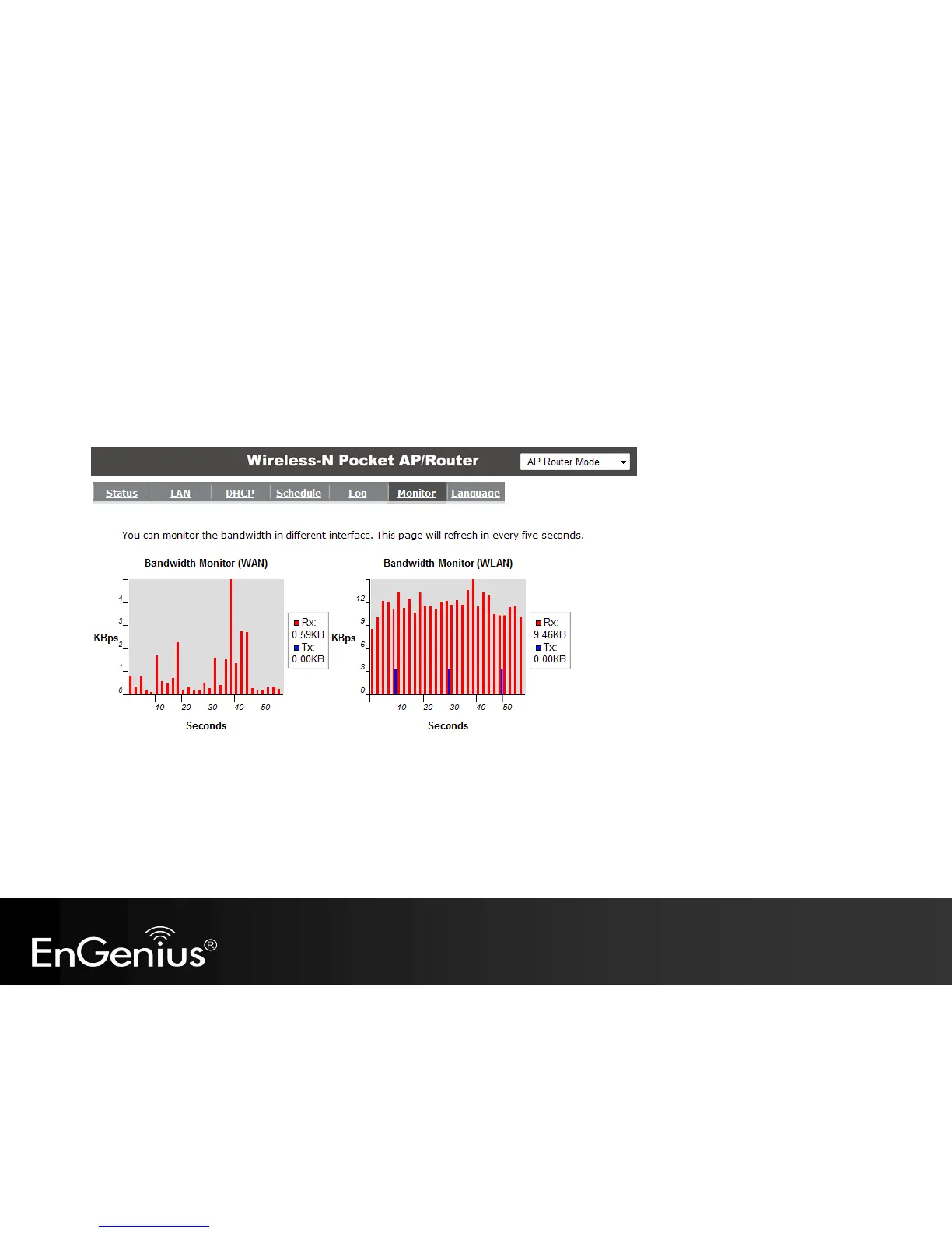 This page shows a histogram of the WAN and Wireless LAN traffic.