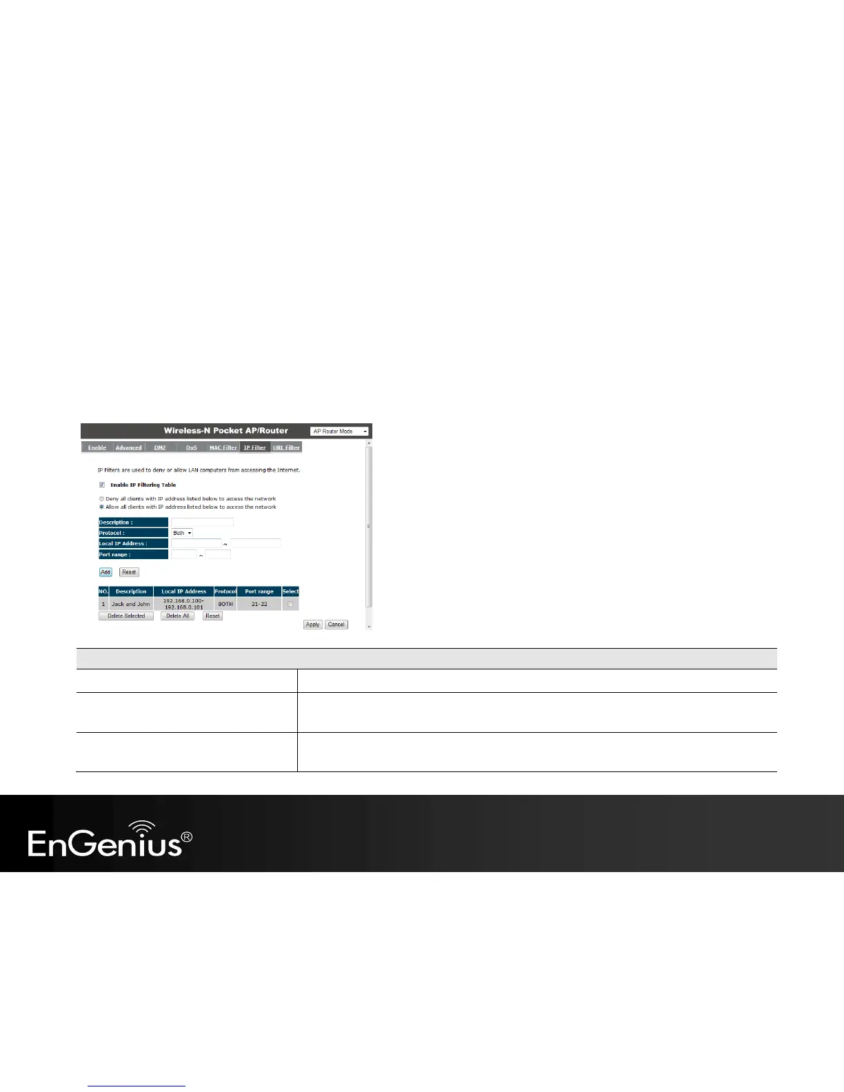When selected, the computers with IP addresses specified will be Allowed access only to the