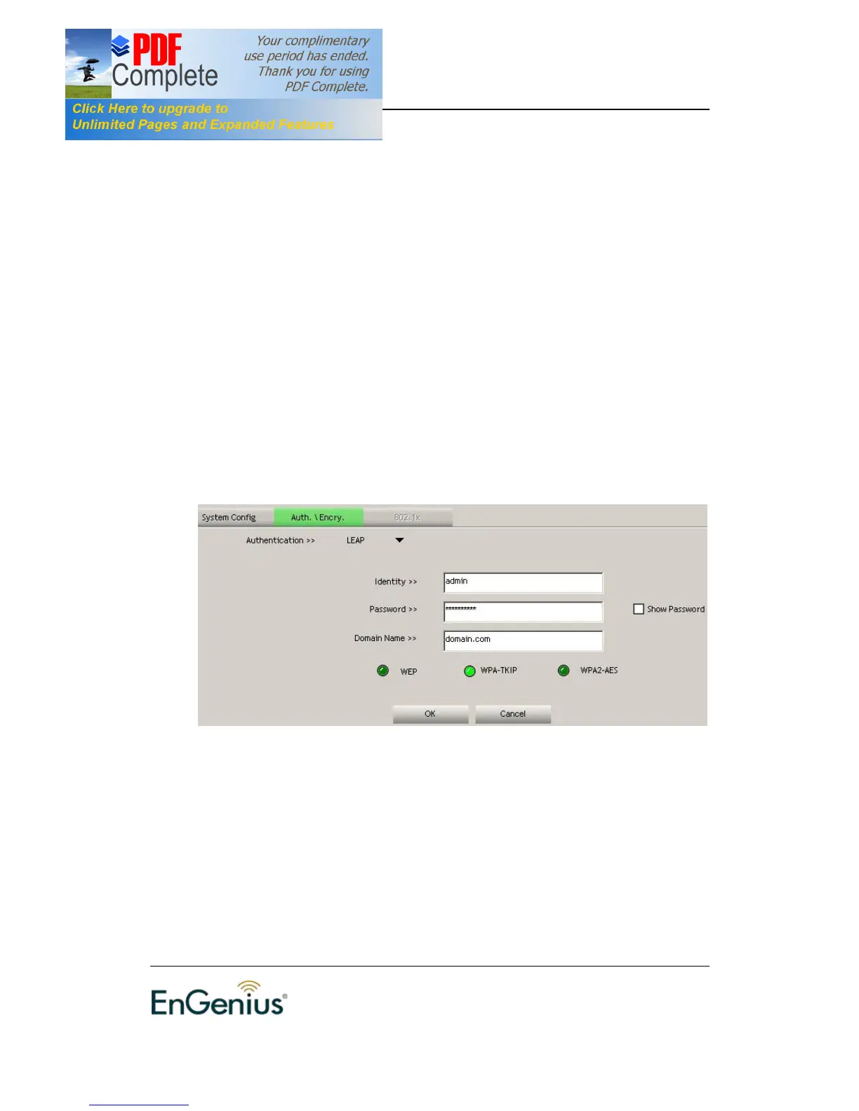 † Authentication Type: Select LEAP from the drop-down list.