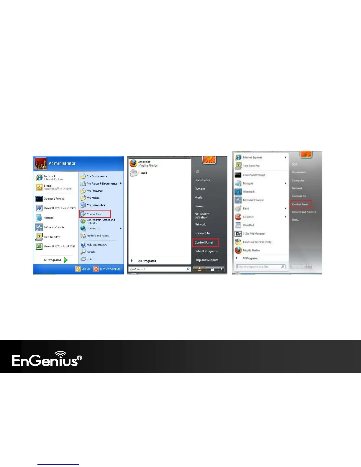 Windows XP Windows Vista Windows 7
