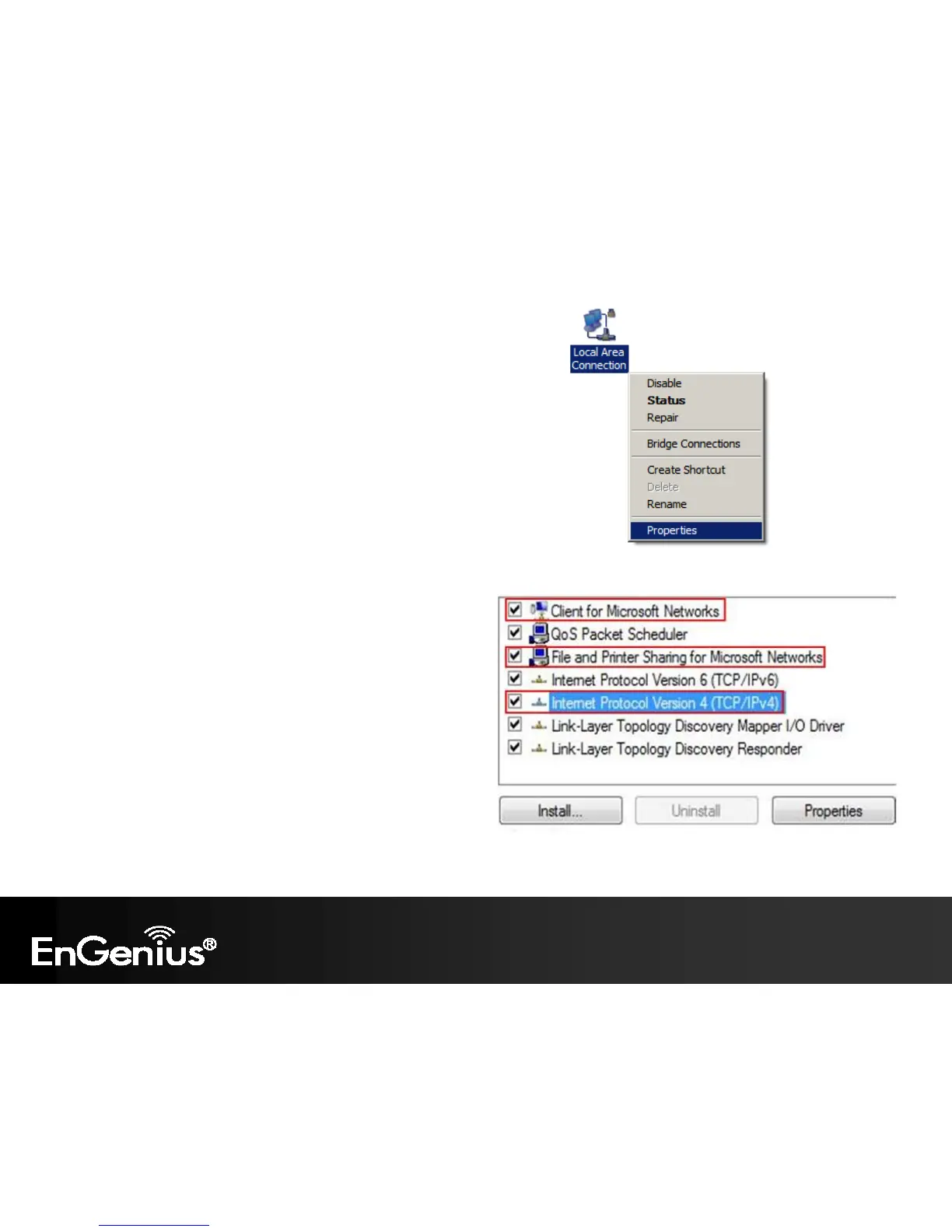 Right click on [Local Area Connection] and select [Properties].