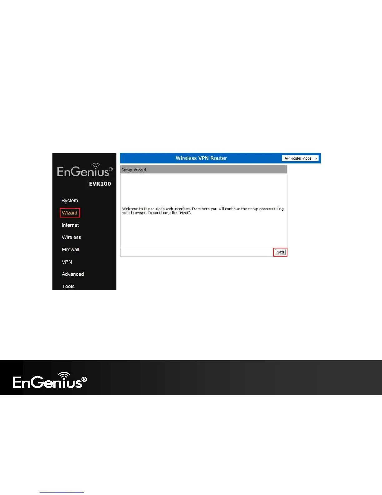 4. Click Wizard to enter the Setup Wizard.