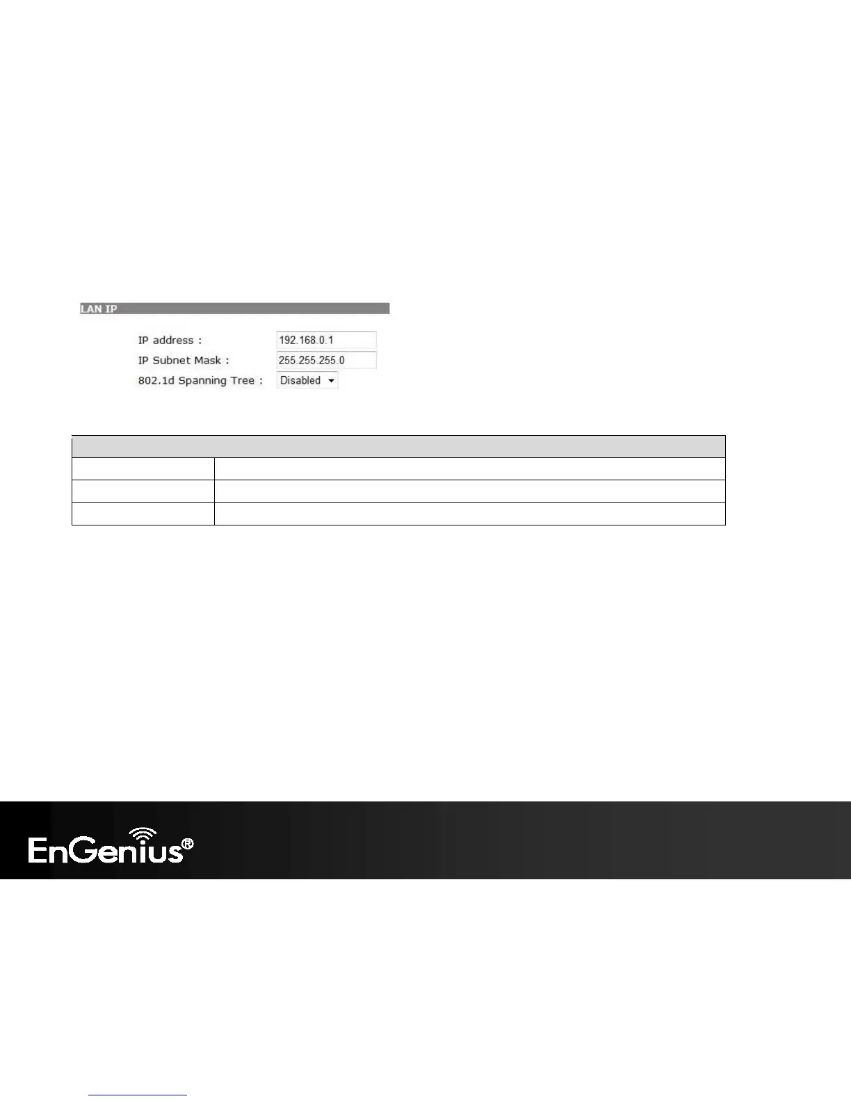 802.1d Spanning Tree When Enabled, the Spanning Tree protocol will prevent network loops in your LAN network.