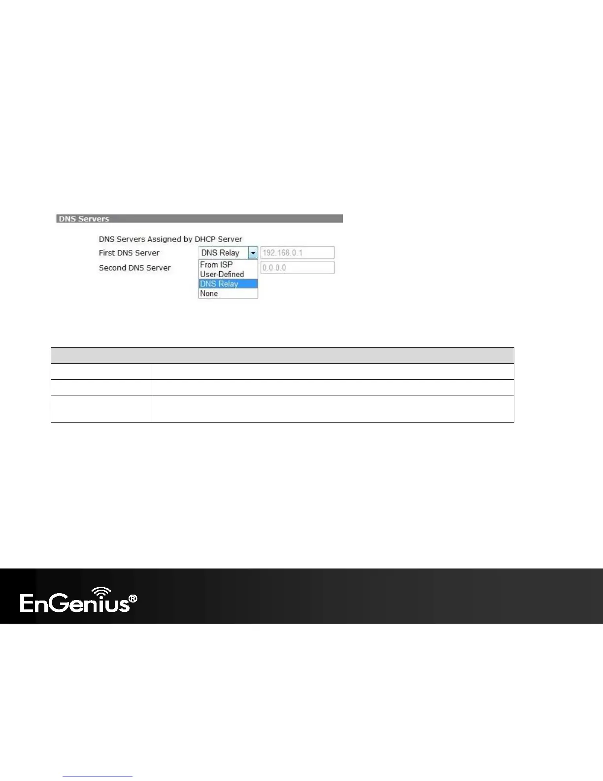 DNS Relay LAN clients are assigned the device’s IP address as the DNS server.