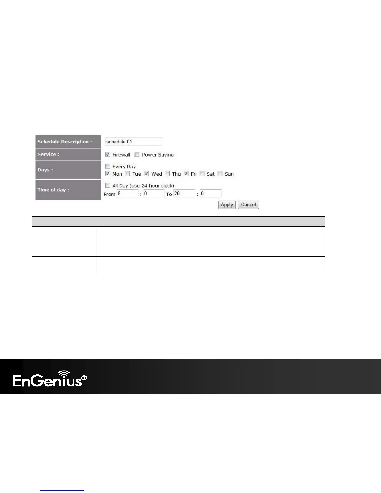 Schedule Description Assign a name to the schedule.