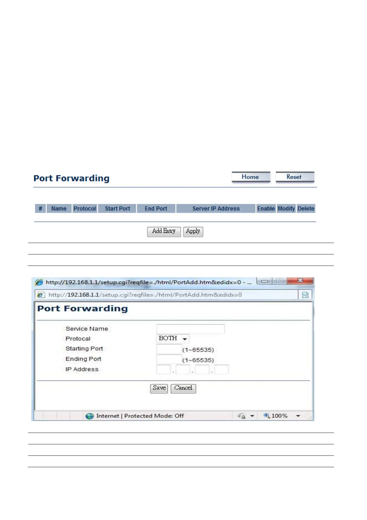 Press Add Entry to add a rule of Port Forwarding.