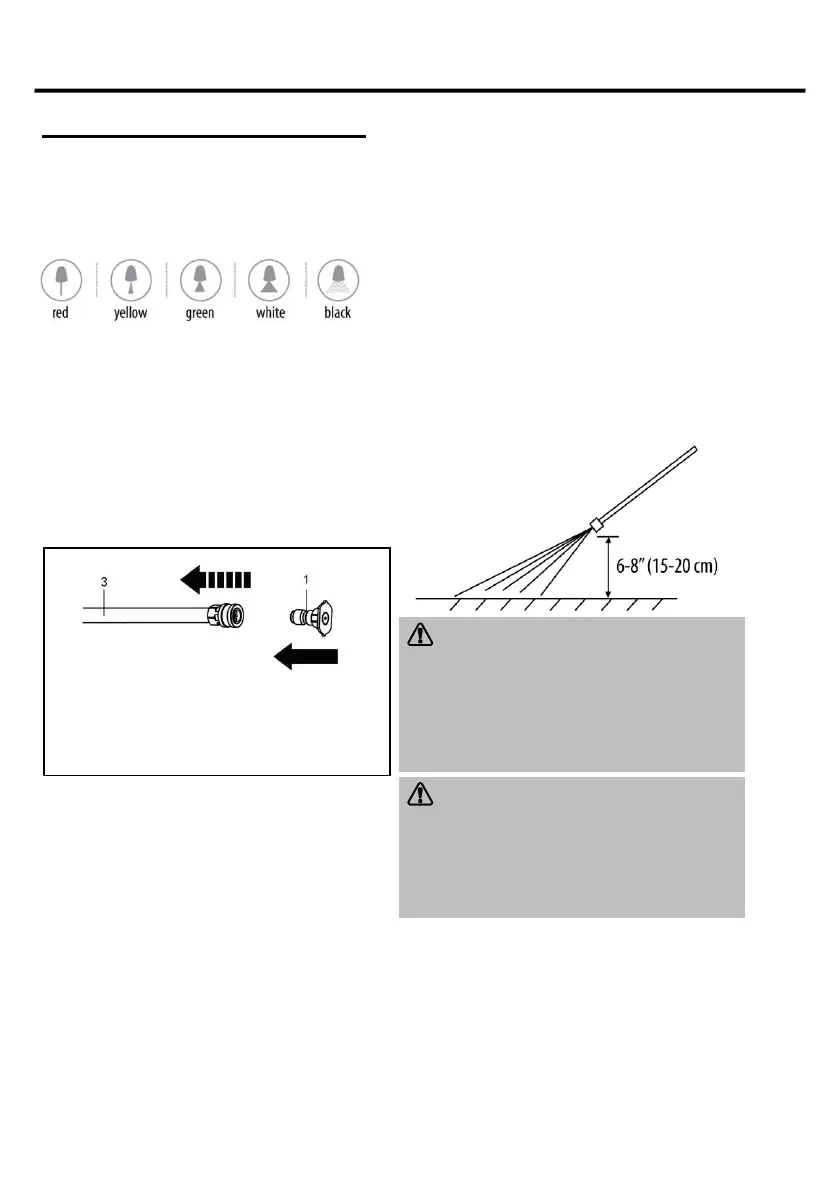 15°(yellow): thin-angled spray for detailed cleaning