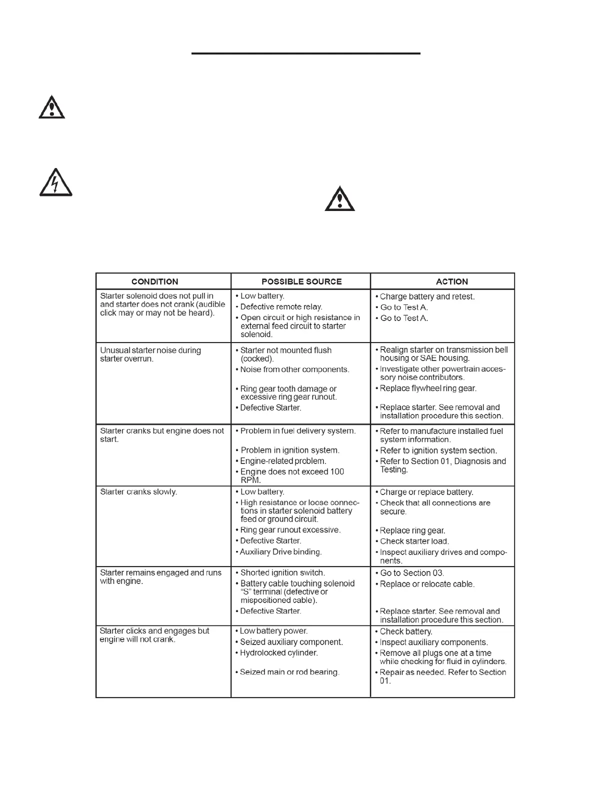1. Inspect starting system for loose connections.