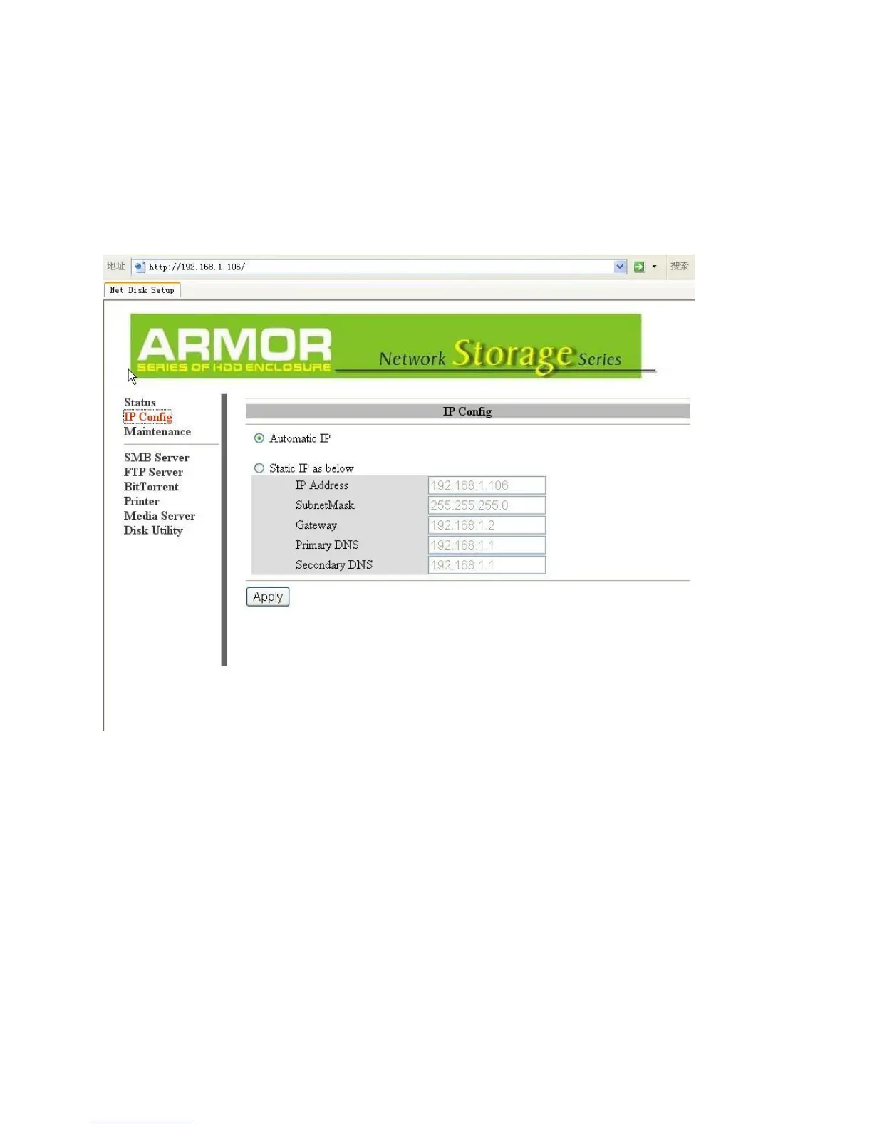 Static IP – If necessary, you can set the LanDrive’s IP address manually. Your network