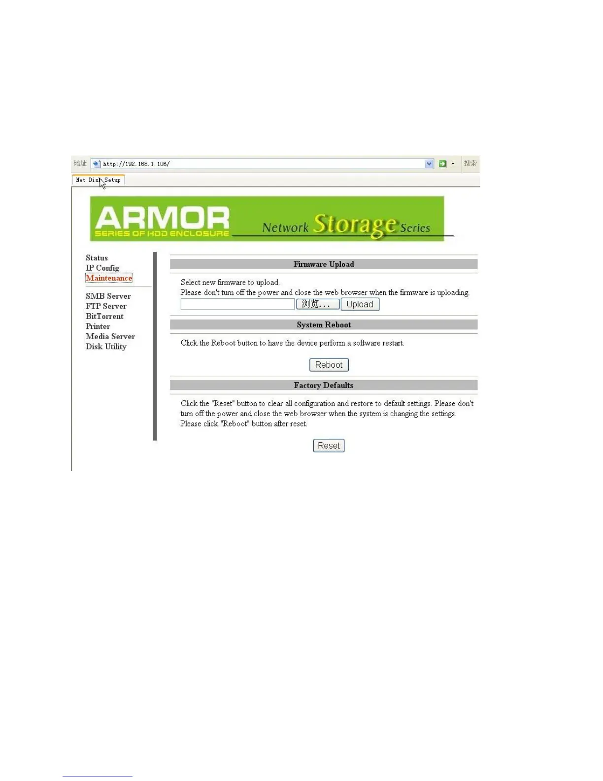 The Maintenance tab allows you to update the LanDrive’s firmware, perform a system