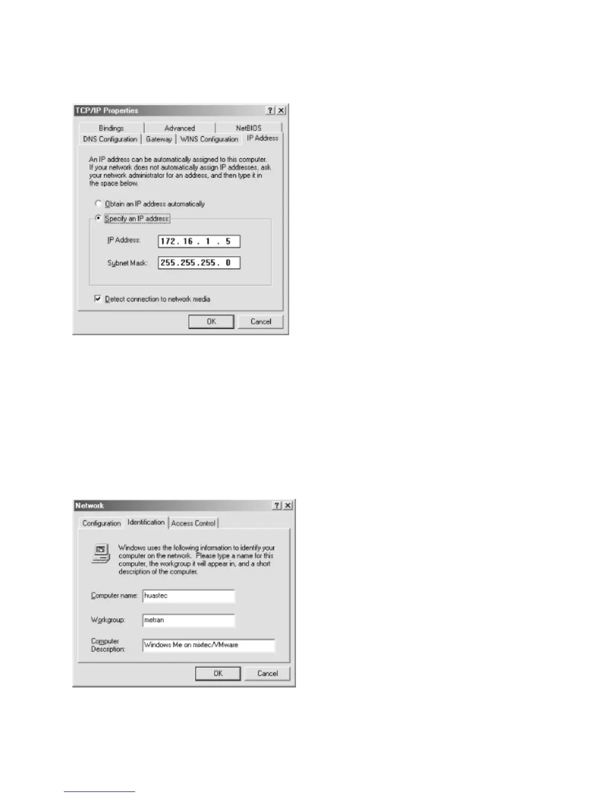 address:" radio button, and fill in the computer's IP address and netmask in the spaces