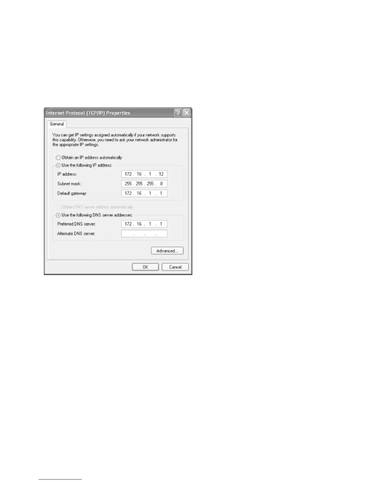 "Obtain IP address automatically" radio button. Otherwise, select the "Use the following