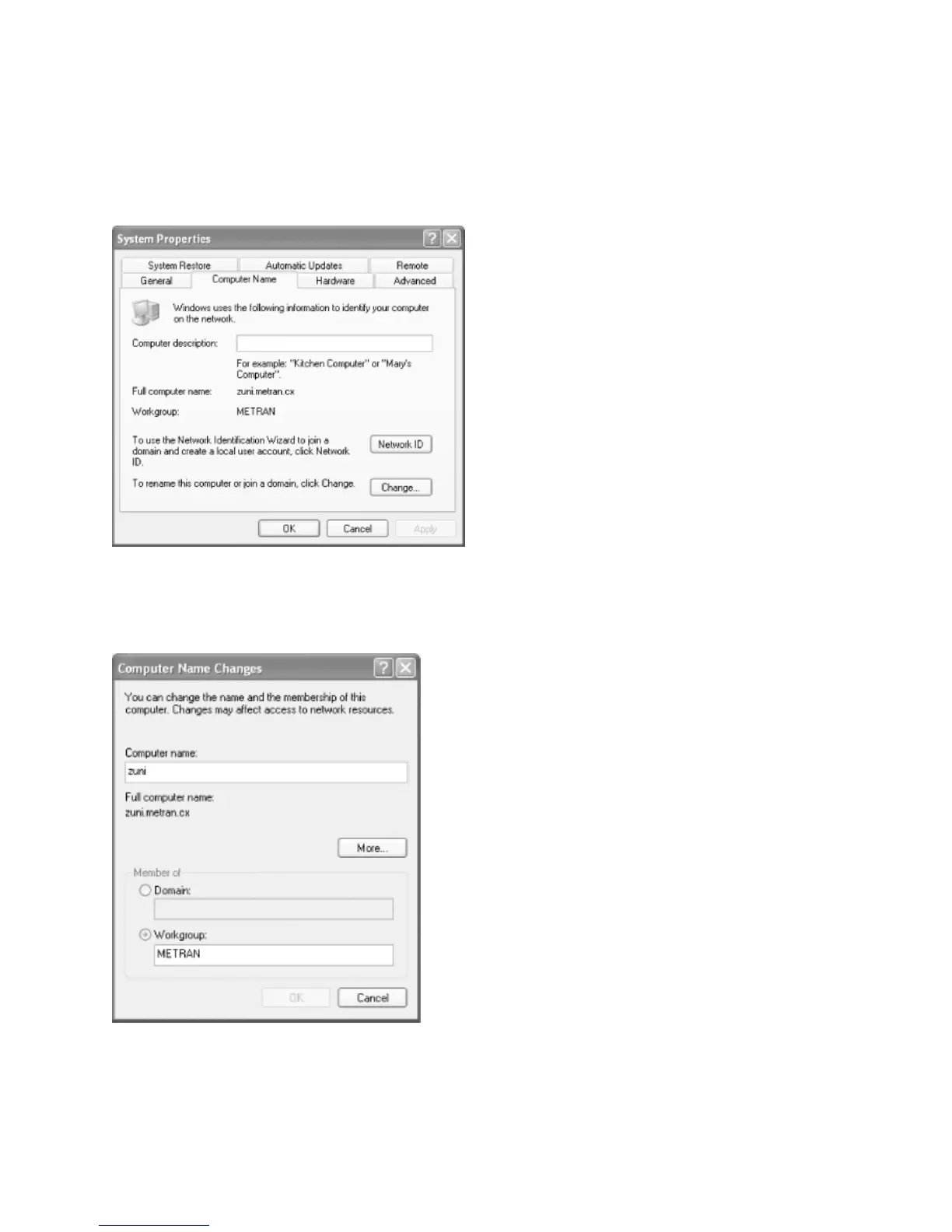 Properties dialog box. Click the Computer Name tab and the System Properties dialog box