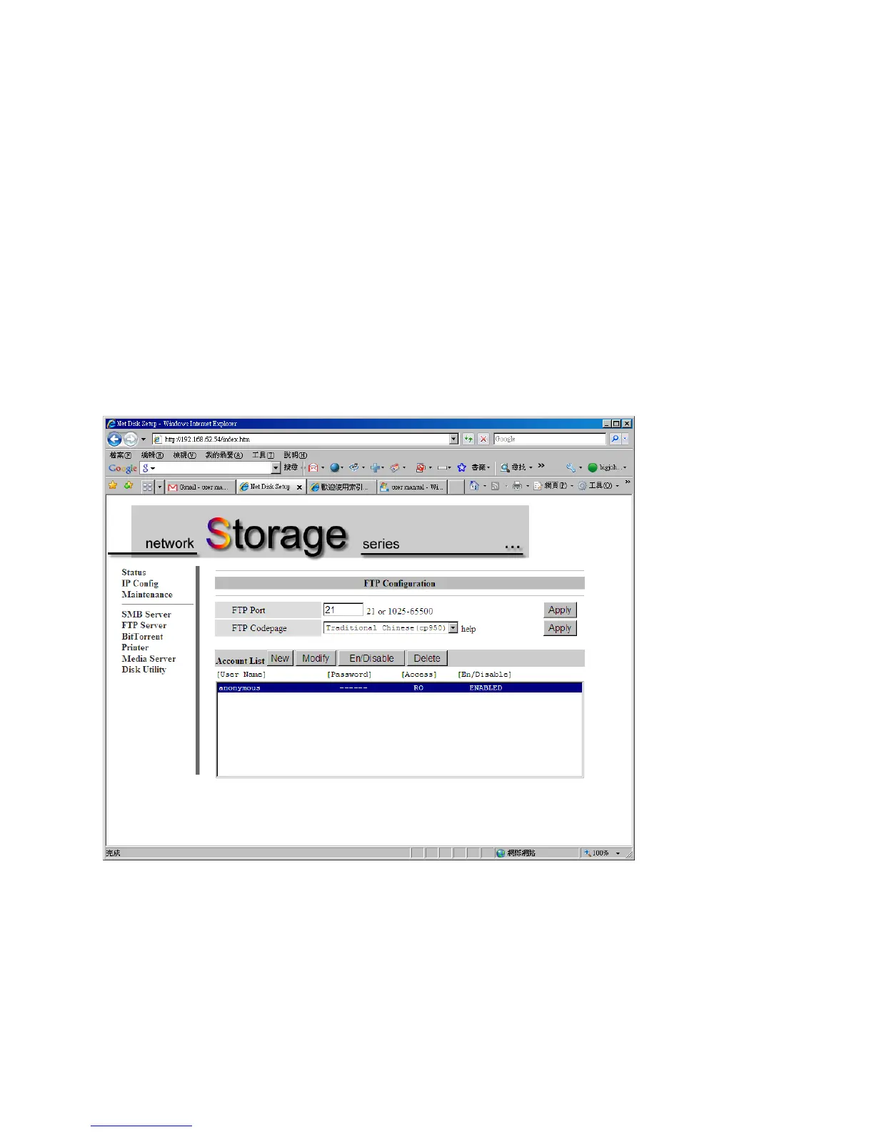 Connect to the LanDrive via HTTP and click on the FTP Server tab.