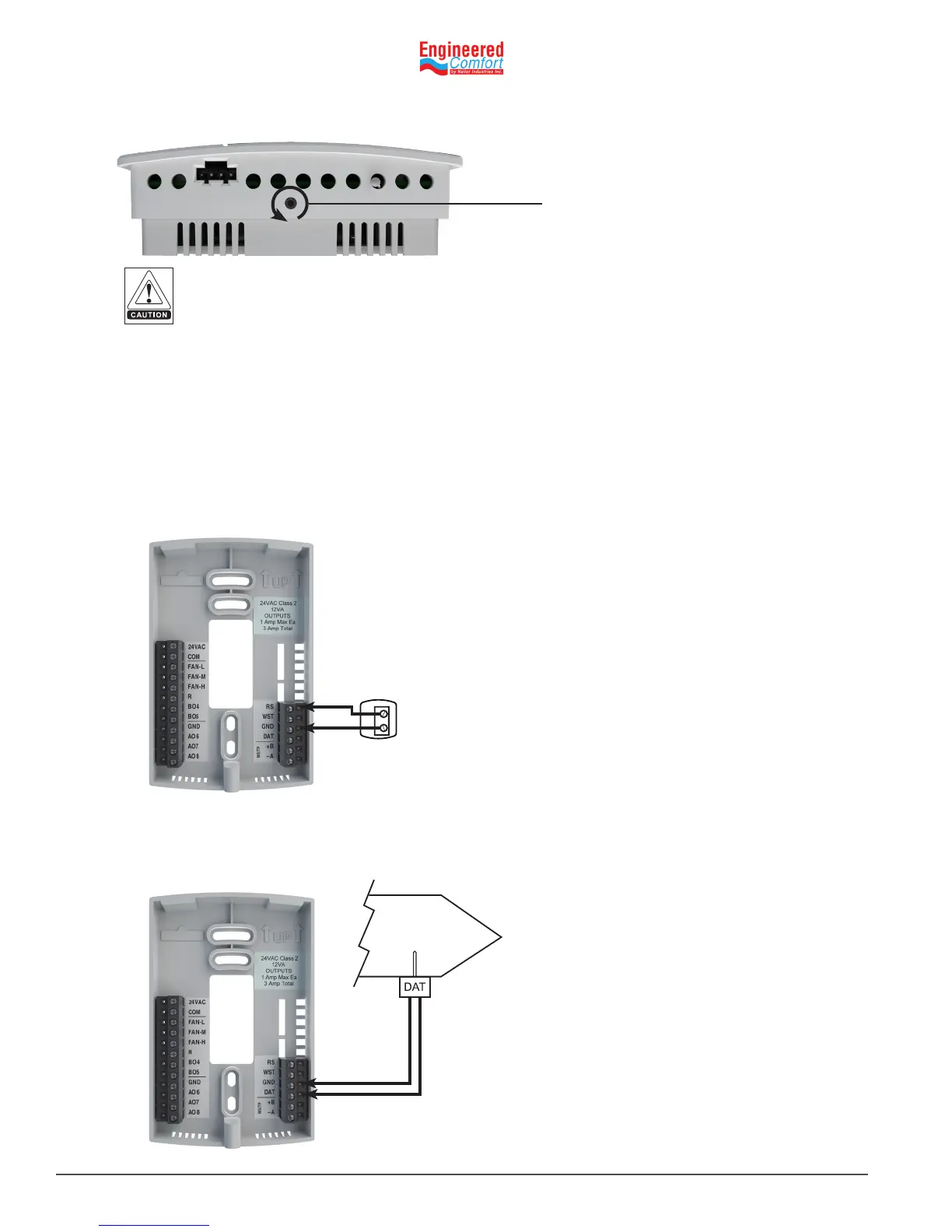Connect a 10kΩ, Type III thermistor temperature (Nailor part #H1‑0246) probe to the discharge air temperature (DAT)
