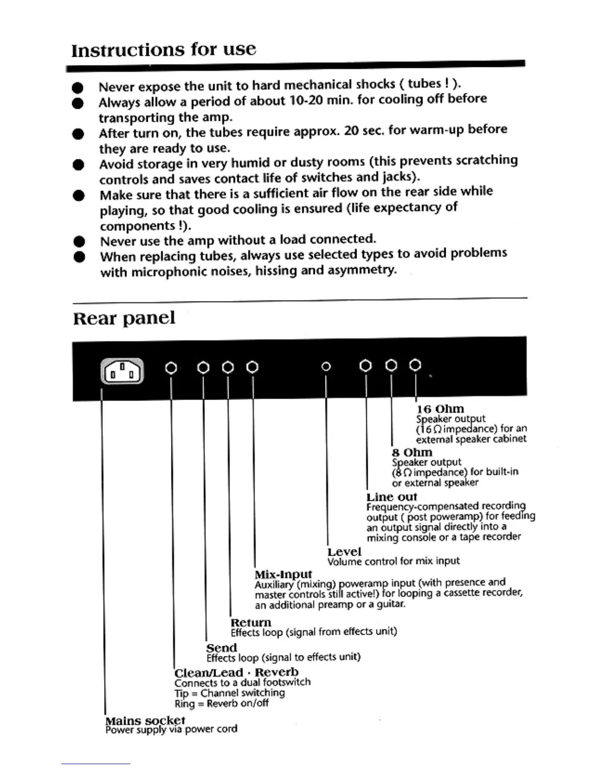 Engl Squeeze 60 - Instructions for Use; General Usage Precautions; Rear Panel Connections